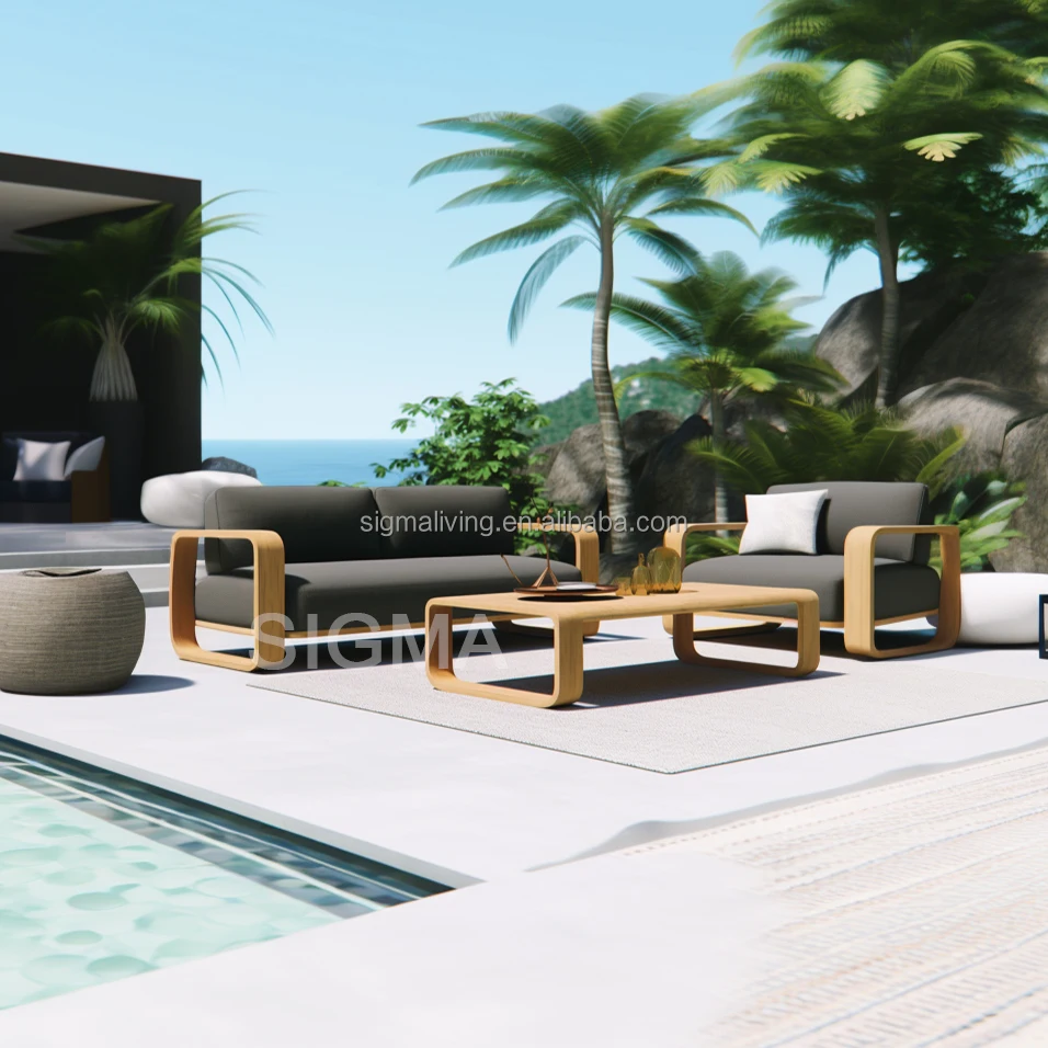2024 Modern outdoor Luxury solid Teak Wooden Frame Garden Patio Outdoor Sofa set