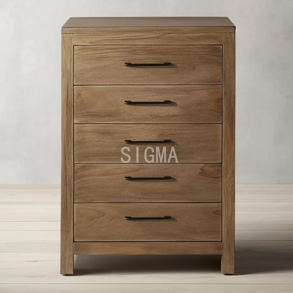 5-drawers vintage solid wood beside table living room furniture modern solid oak wood storage cabinet