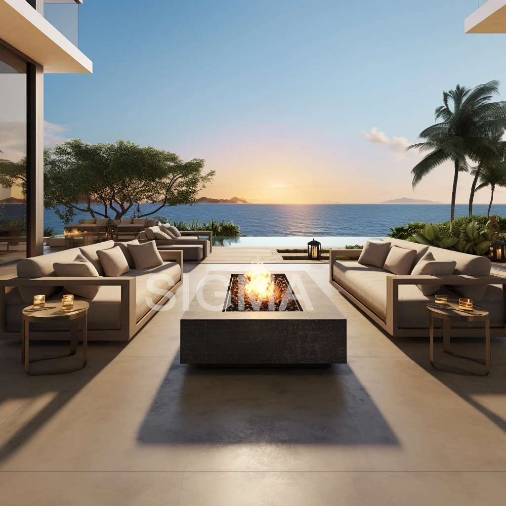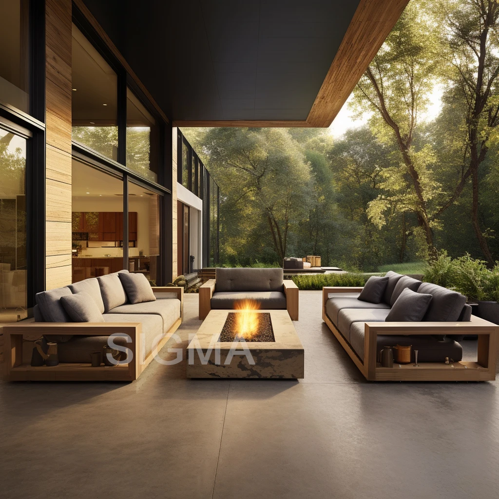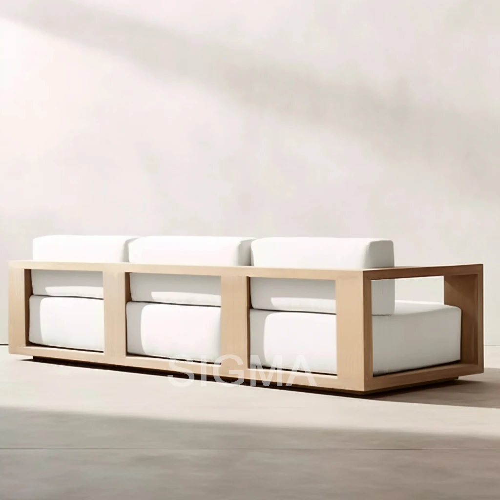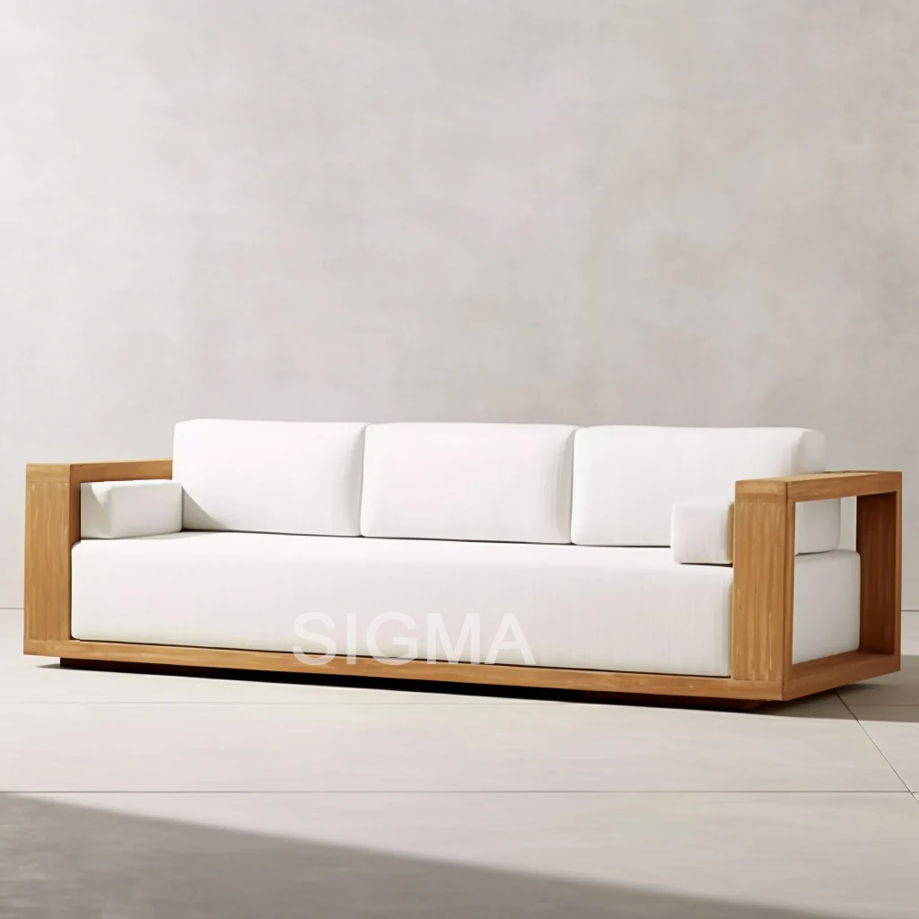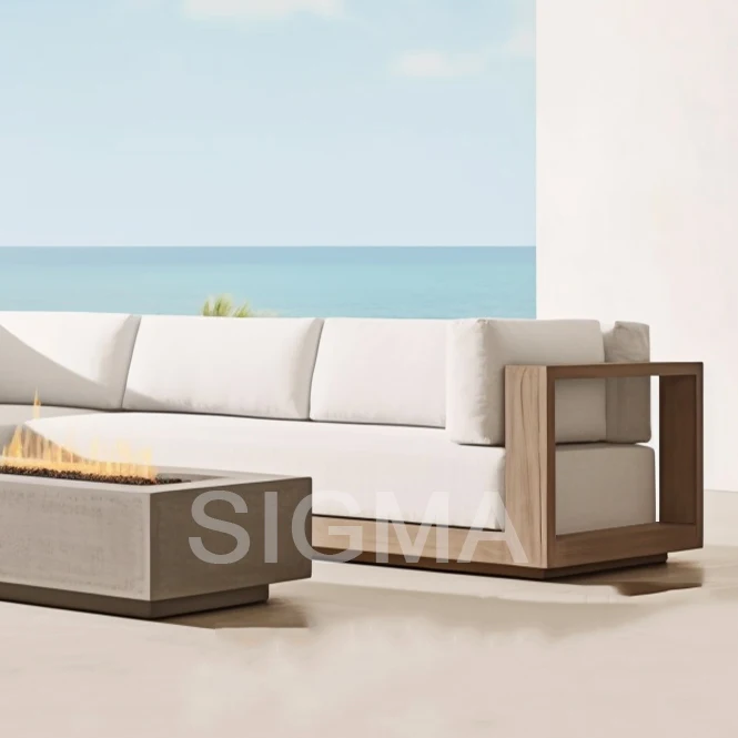 All-weather High-end outdoor furniture villa wooden teak sectional sofa set private garden sofa hotel patio teak outdoor sofa