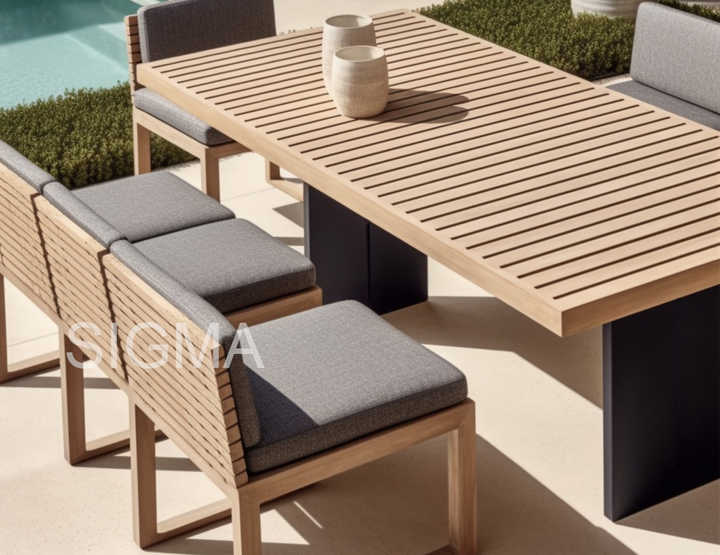 All Weather Solid Teak Rectangular Table Set Outdoor Teak Wood Garden Table Set