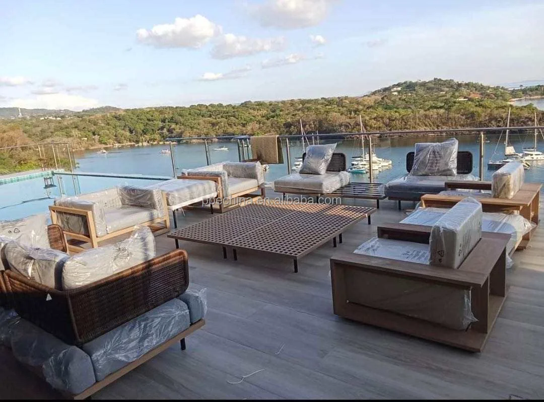 All weather waterproof teak wood outdoor hotel furniture garden terrace hotel partition outdoor sofa set