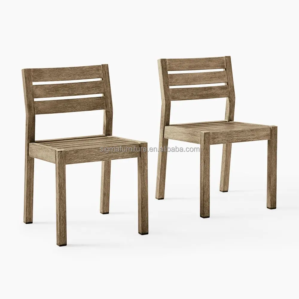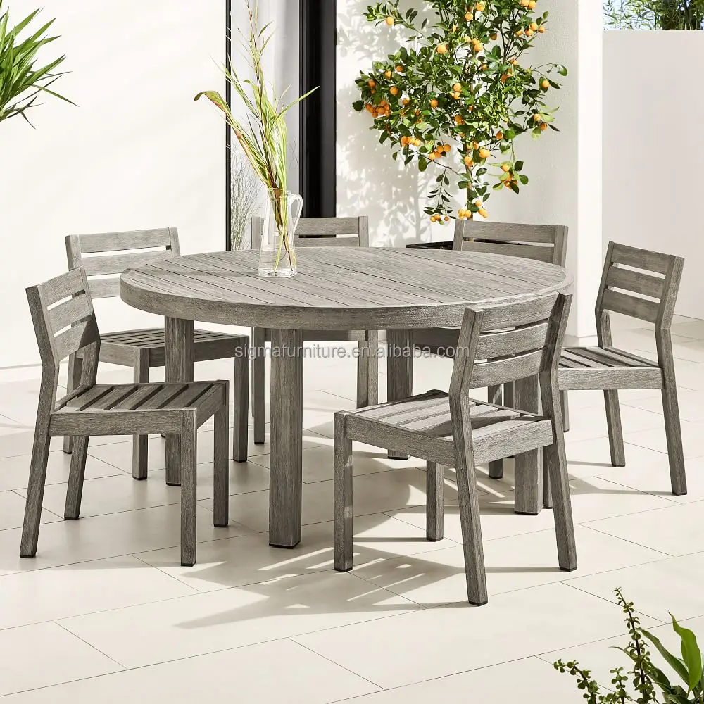 American Style Outdoor Furniture Teak Solid Wood Chairs Round Table Garden Dining Set with Umbrella Hole