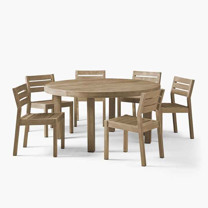 * Overall product dimensions: 60”diam. x 30"h. * Distance between legs: 30.6". * Comfortably seats up to: 6. * Umbrella hole dimensions: 2.25"diam. DINING CHAIR