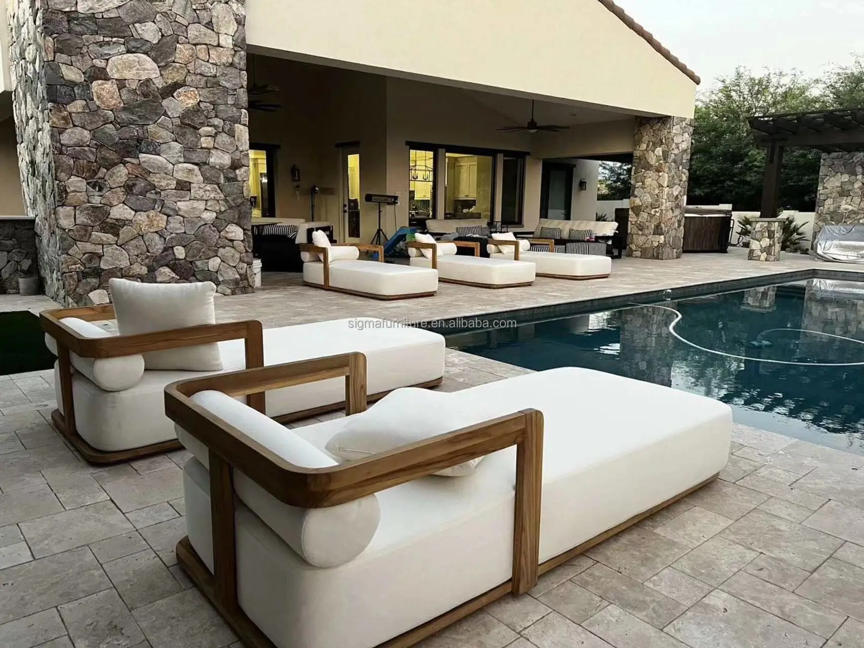 Beach solid teak wood swimming pool hotel patio garden furniture outdoor lounge chair