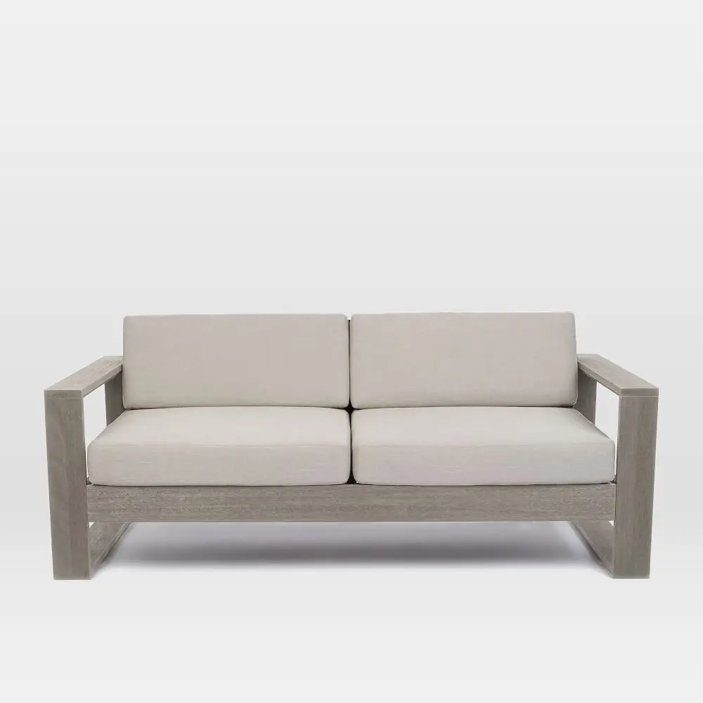 Easy cleaning two seat garden courtyard teak wood outdoor furniture sofa with cushion