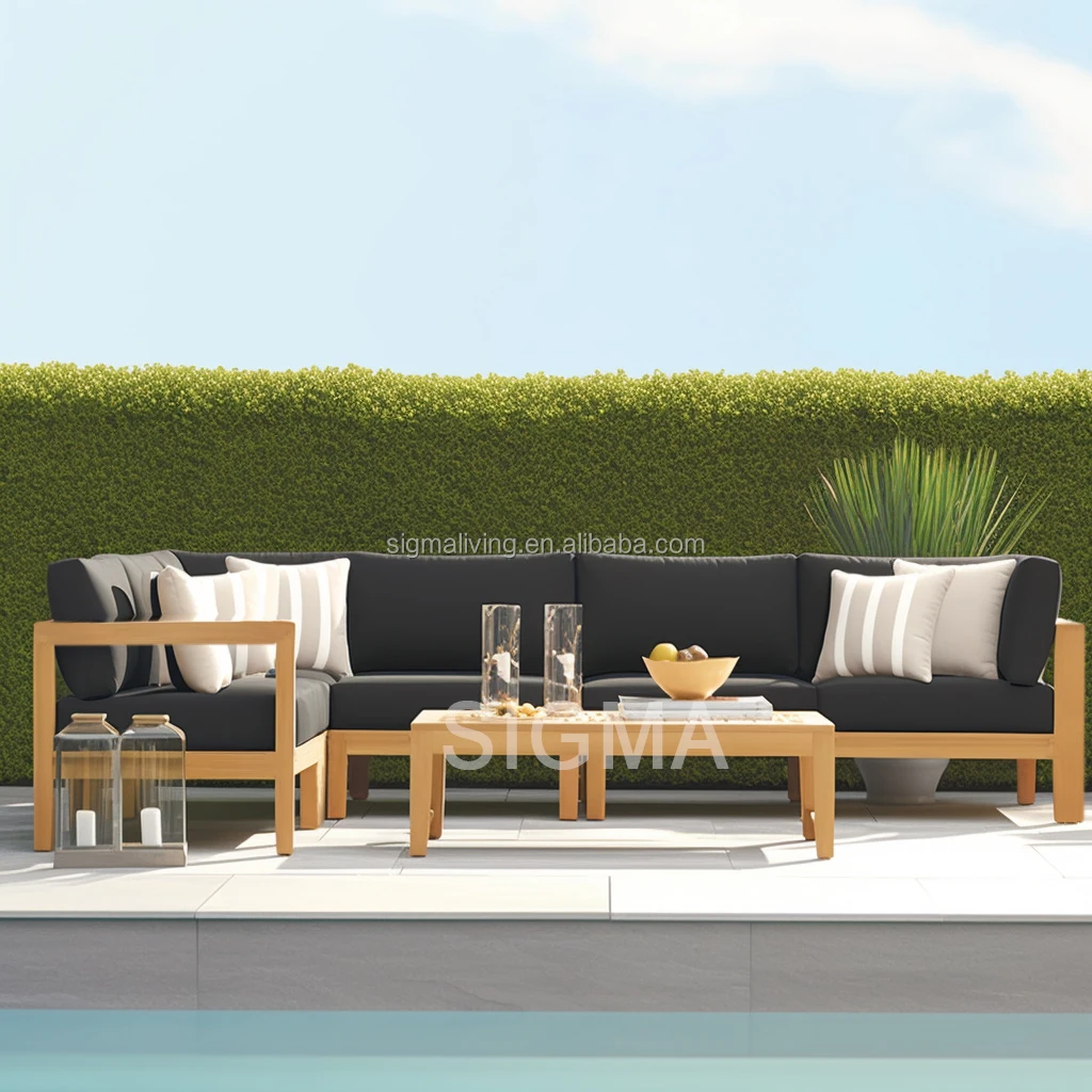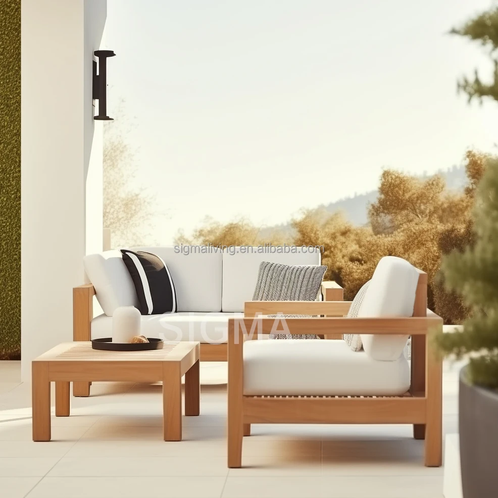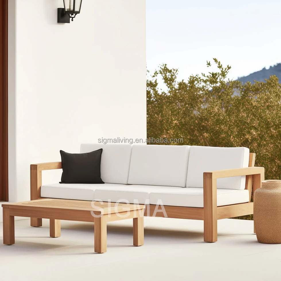 Factory Custom Patio High End Solid Wooden Garden Sofa Modern All Weather Teak Wood Rope Sofa Outdoor Furniture Garden Sofa
