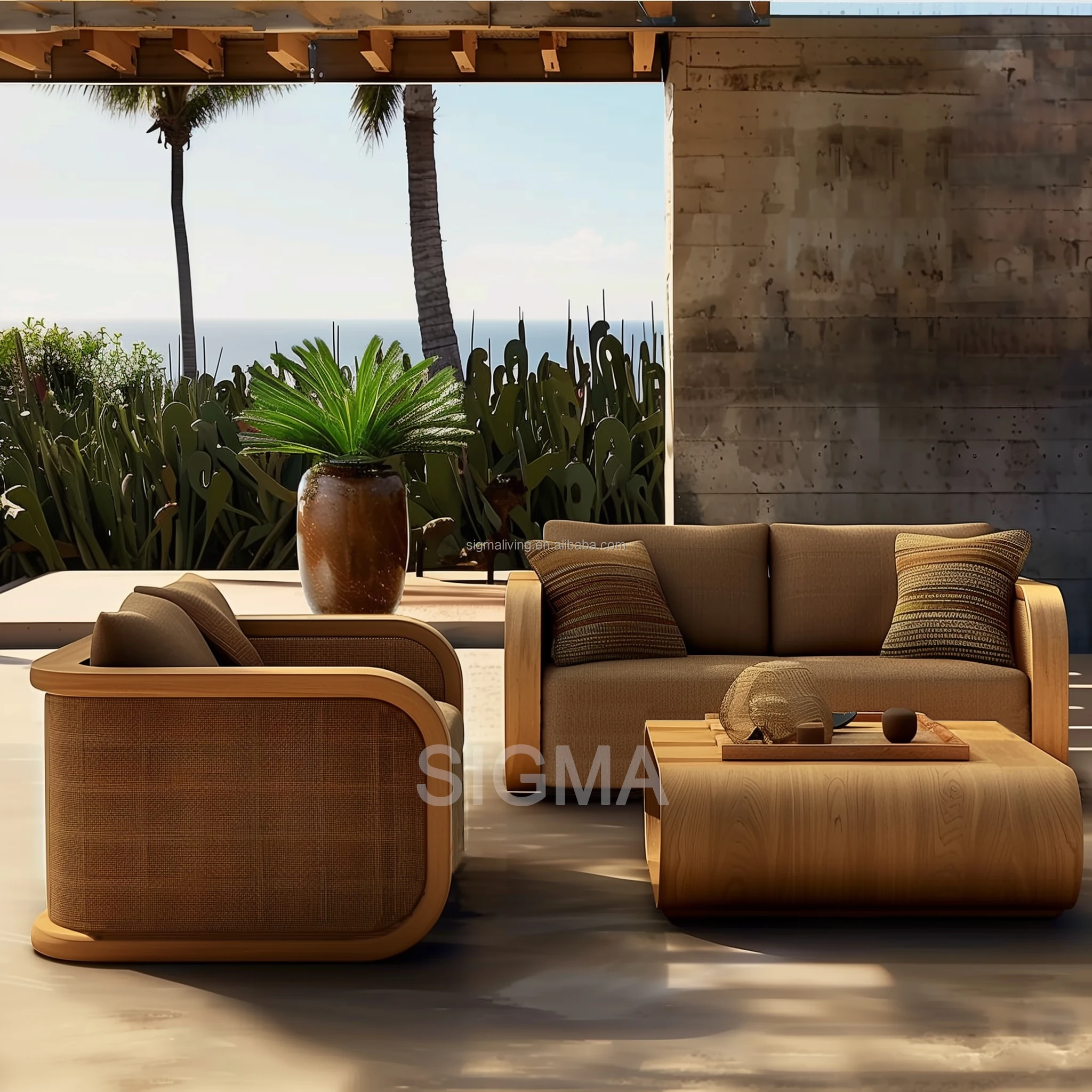 Outdoor Patio Hotel Sets Sofa Lounge Furniture Teak Garden Sofa Couch Wooden Furniture Modern All Weather sofa garden Set