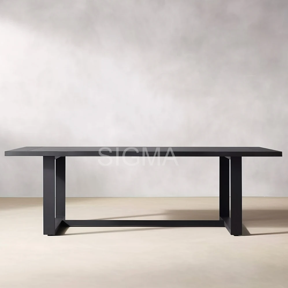 Factory design minimalism style outdoor furniture patio garden broad planks design with chairs aluminum dining table set