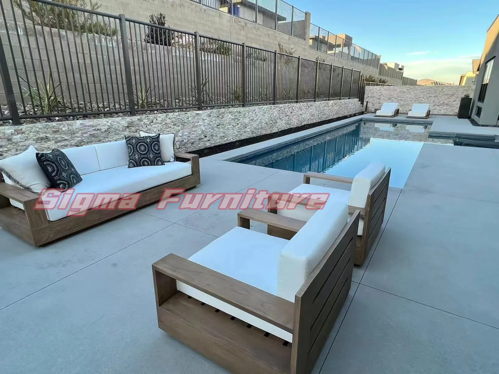 Factory High End Patio Furniture Teak Wood Outdoor Furniture Garden Set OEM/ODM Solid Teak Wooden Sofa