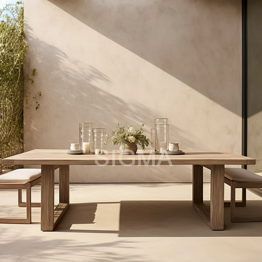 Factory New Design Modern Garden Outdoor Balcony Hotel Furniture Set Teak Wood table Dining table set