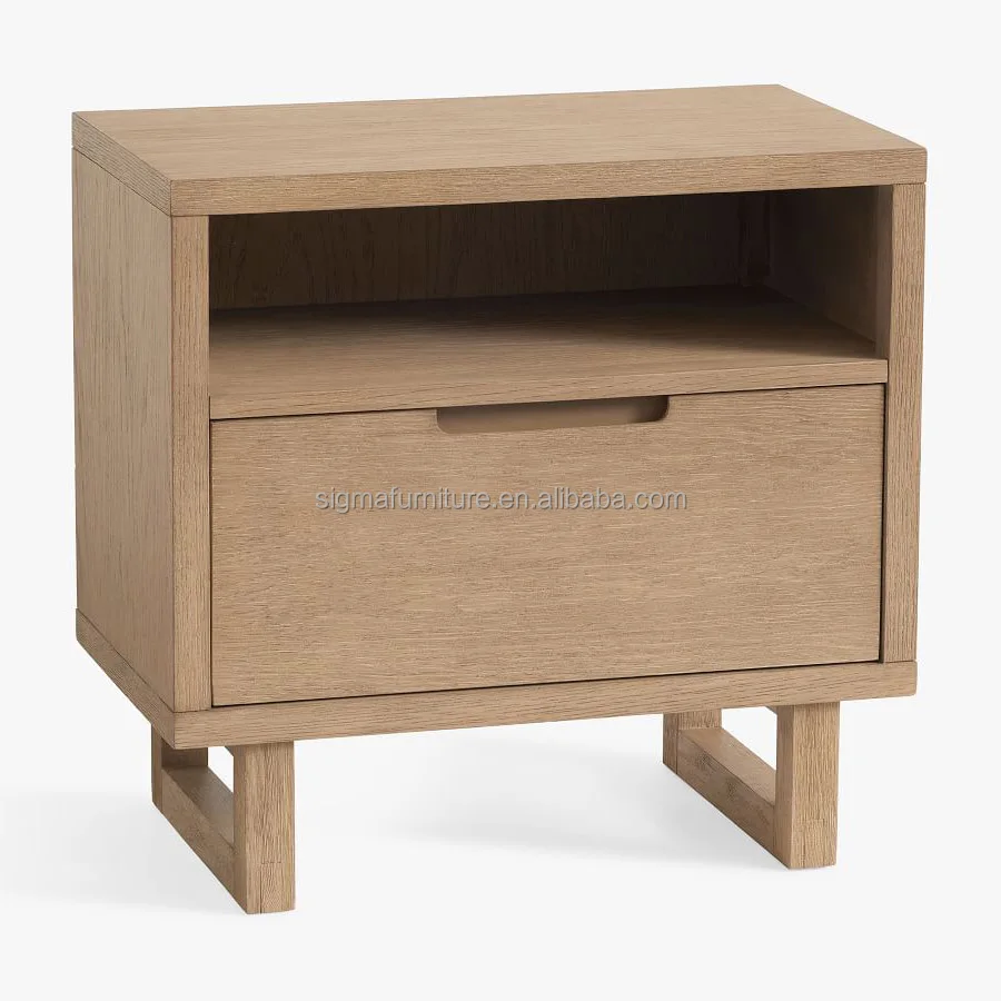 French modern solid oak wood home bedroom furniture night stand table 22'' bed wooden nightstands