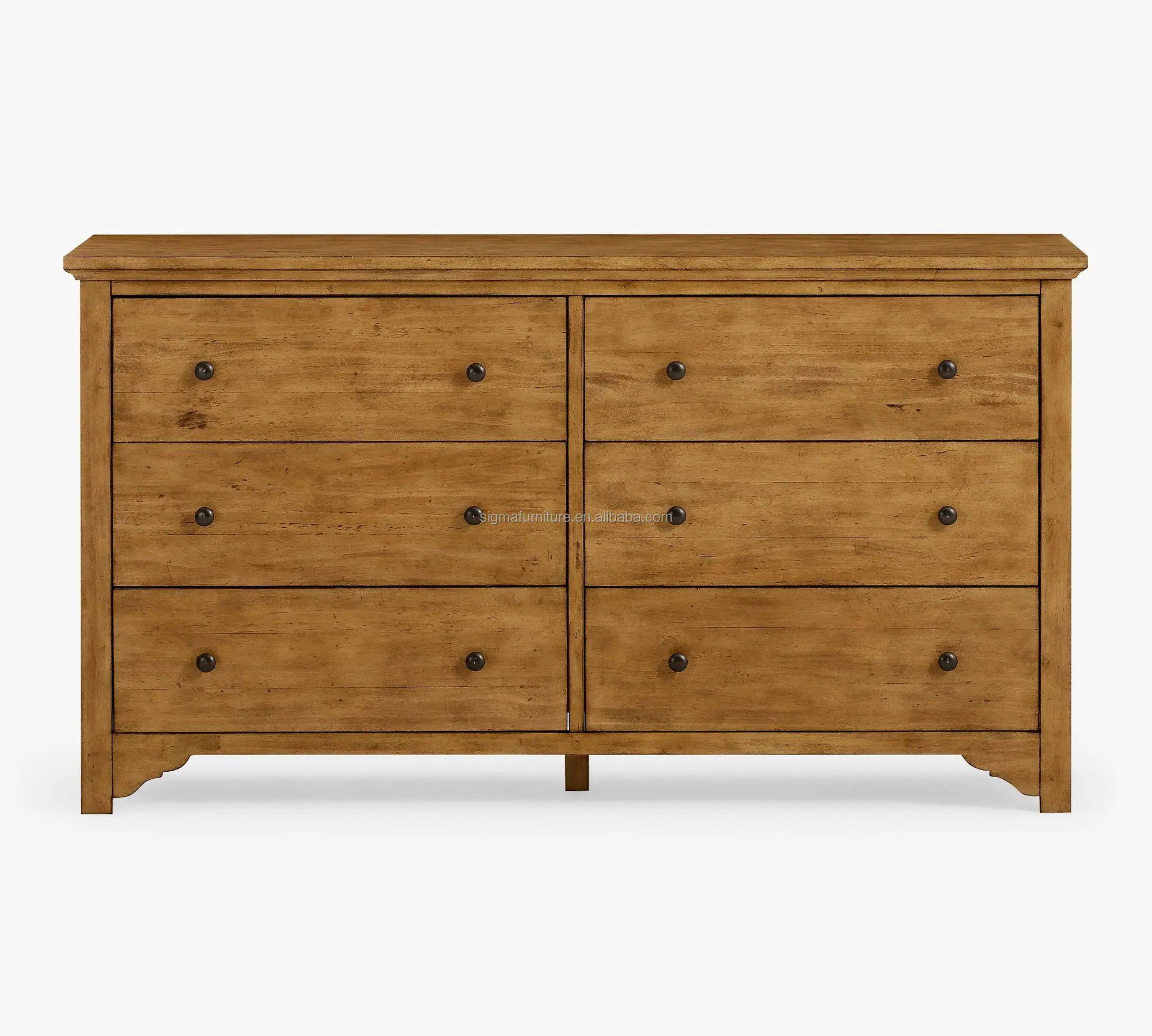 Heritage Farmhouse 6-Drawer Dresser Villa bedroom furniture drawer dresser cupboard chests cabinet