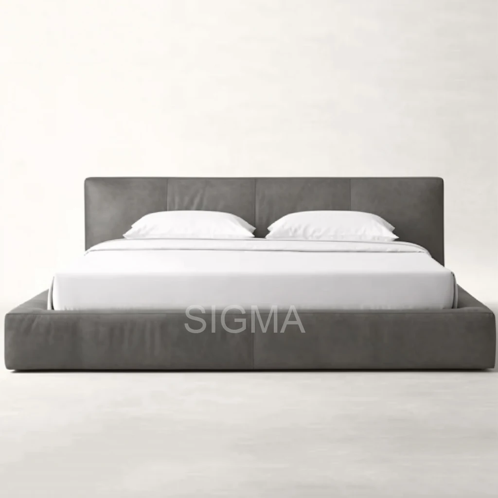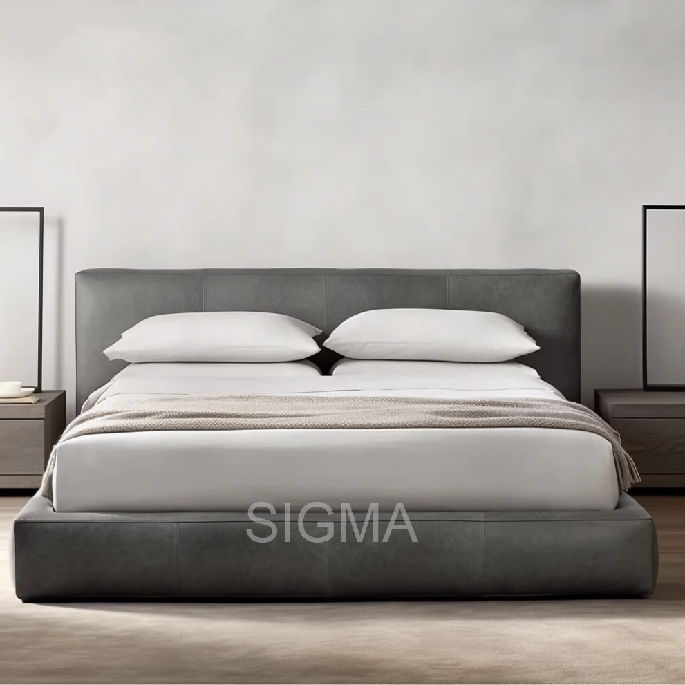 High End Hotel Home Indoor Furniture bedroom king bed platform bed leather panel leather bed