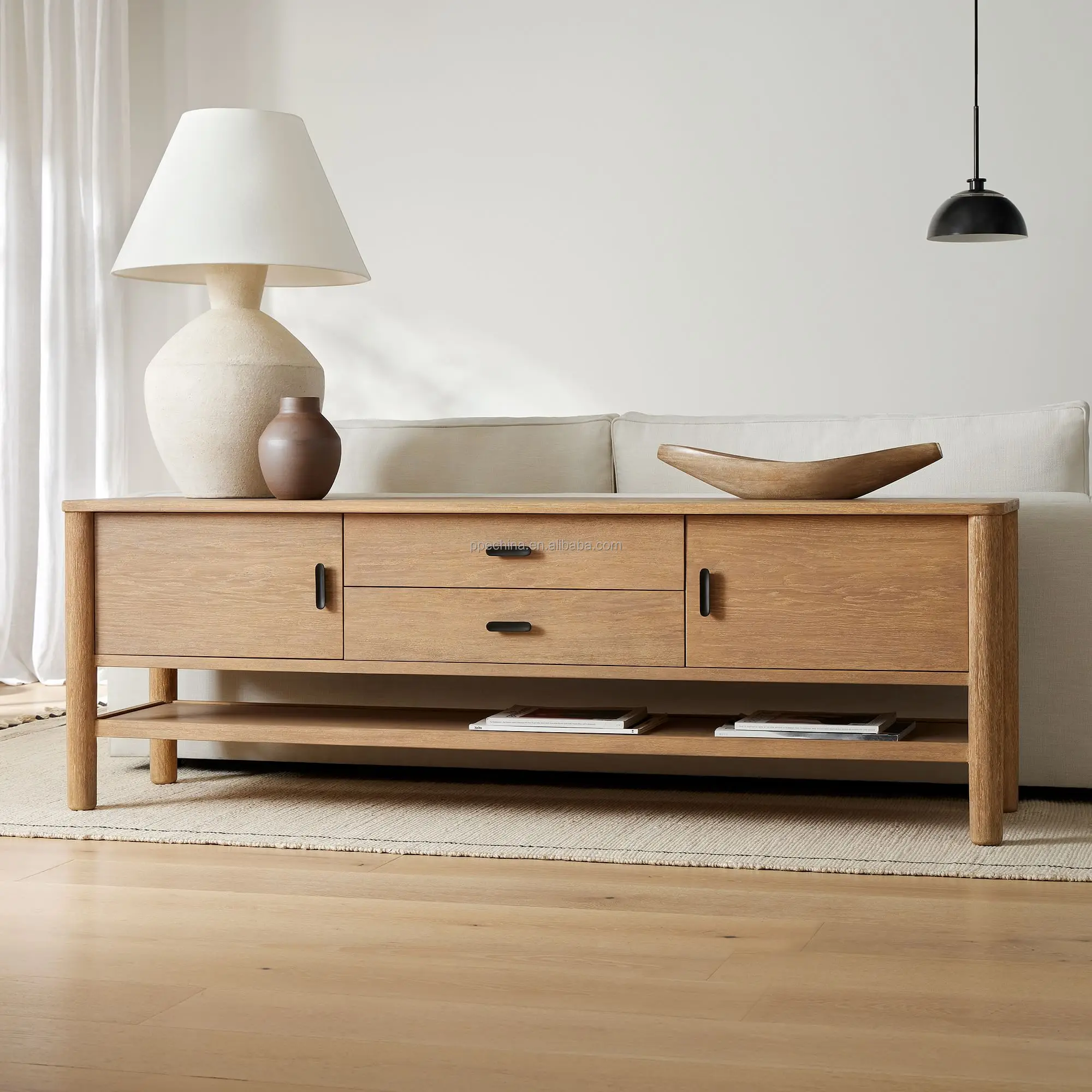 High quality Customized Furniture Living Room natural wood oak TV stand table Wooden Media Console