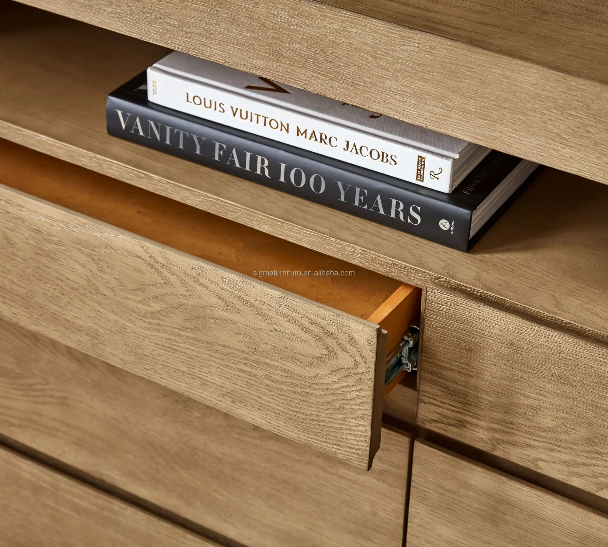 * TOP: 3" t * TOP DRAWER EXTERIOR (2): 34" w x 5.5" h x 0.75" t * TOP DRAWER INTERIOR: 25" w x 13.5" d x 3" h * BOTTOM DRAWER EXTERIOR (4): 34" w x 8.5" h x 0.75" t * BOTTOM DRAWER INTERIOR: 25" w x 13.5" d x 5.5" h * SHELF: 59.5" w x 17" d x 6" h |