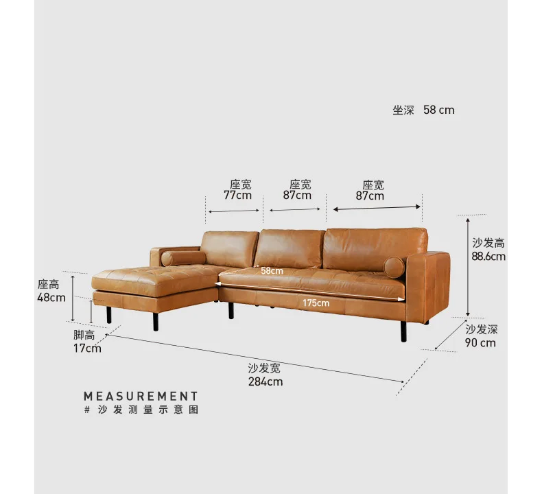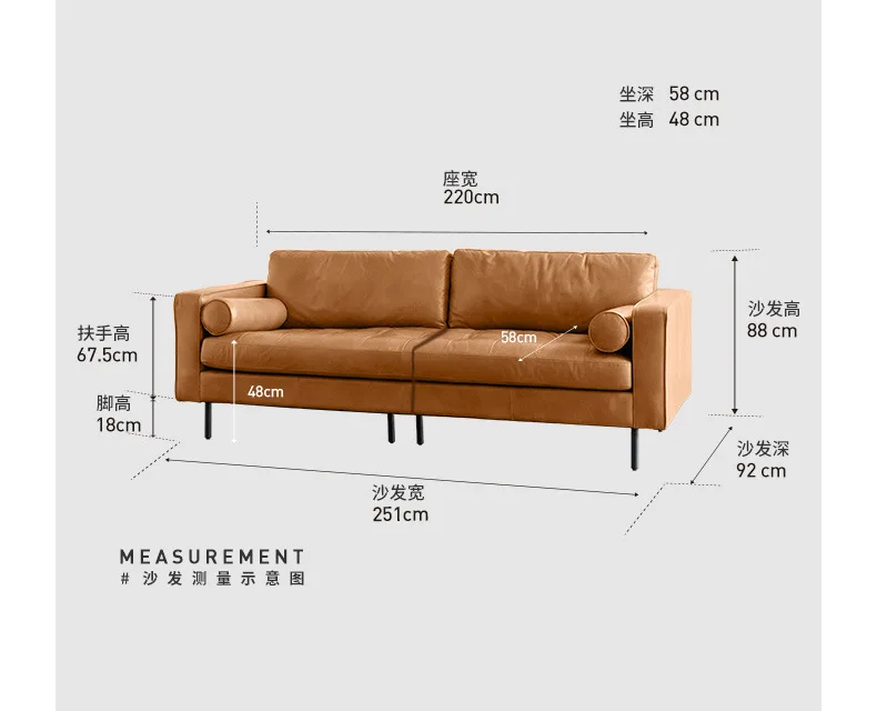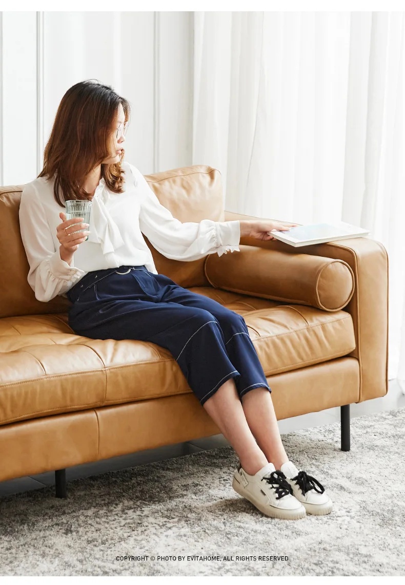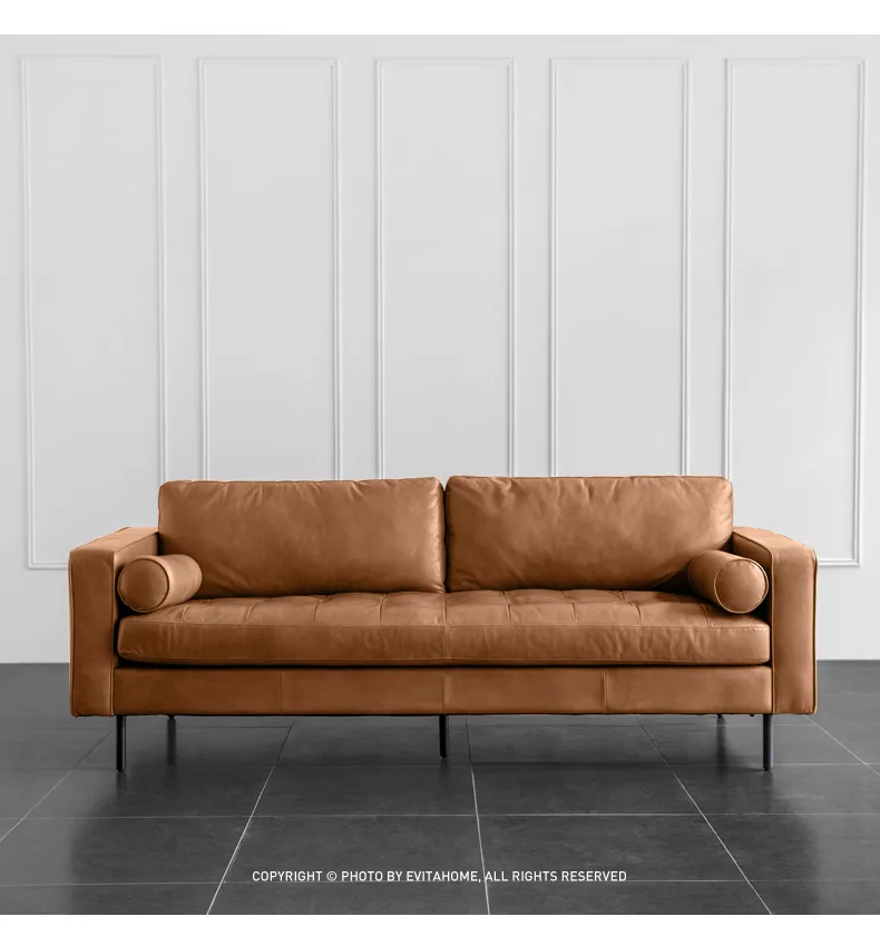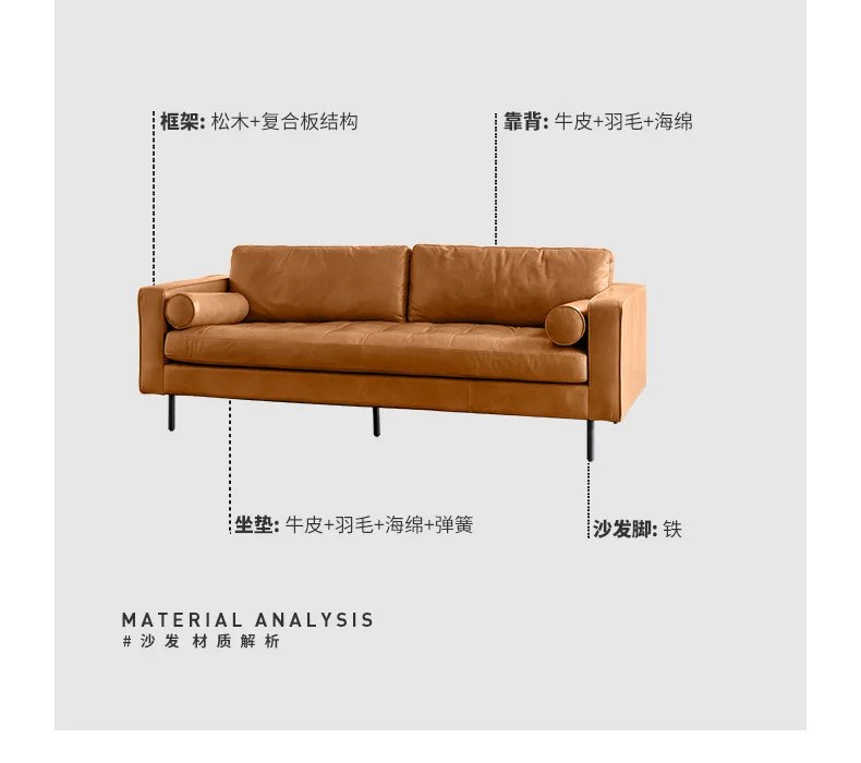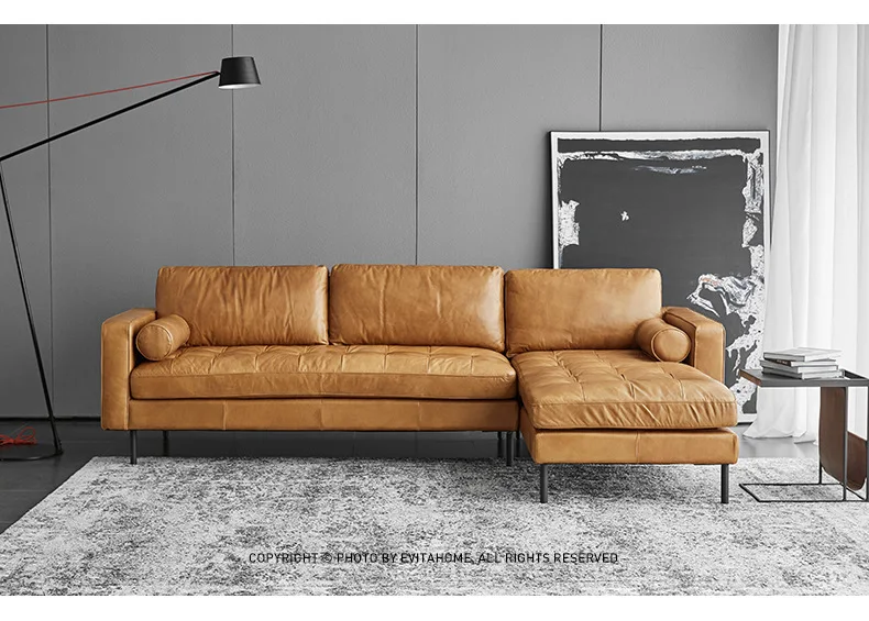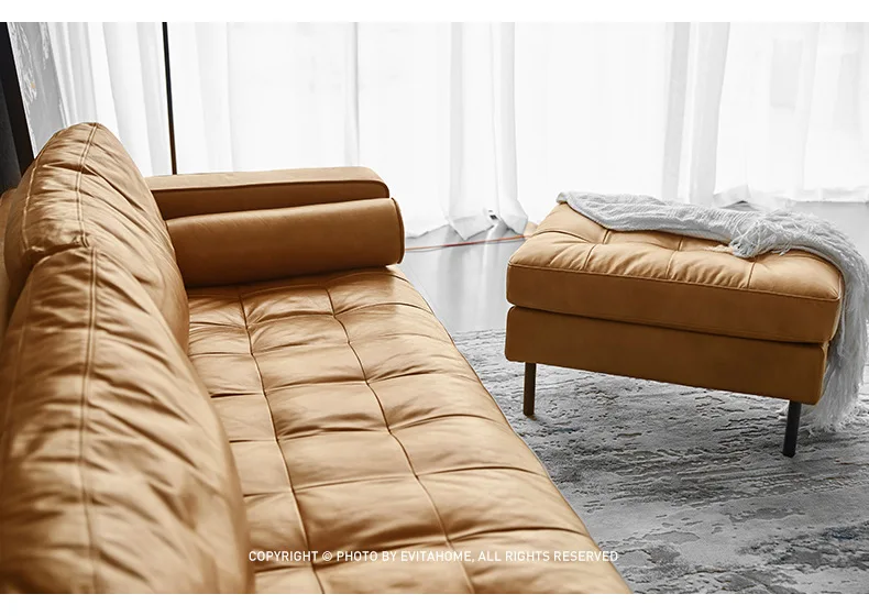 High Quality Italian Style Leather Sofa head layer of cove Big Size leather Down Sofa set Living room Furniture