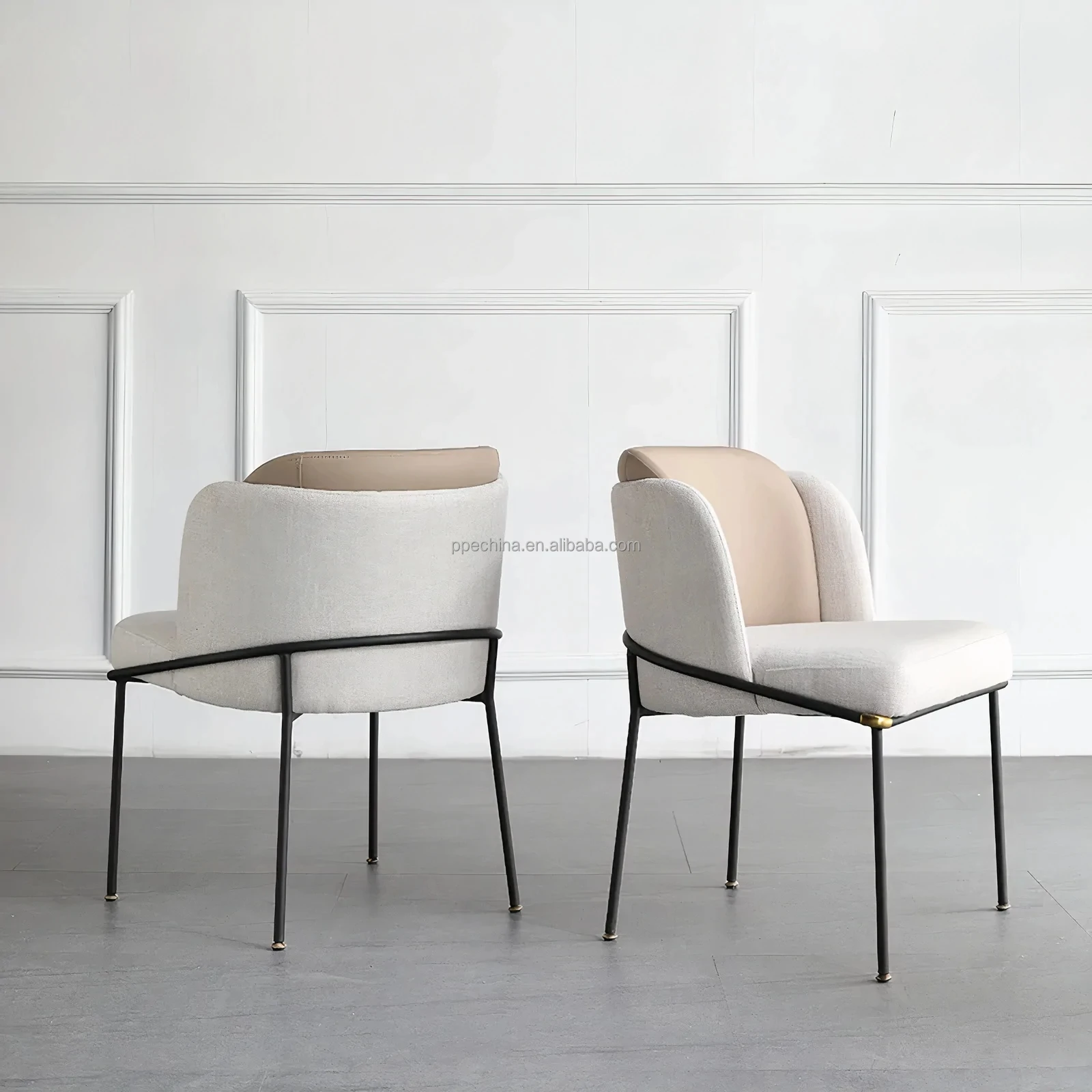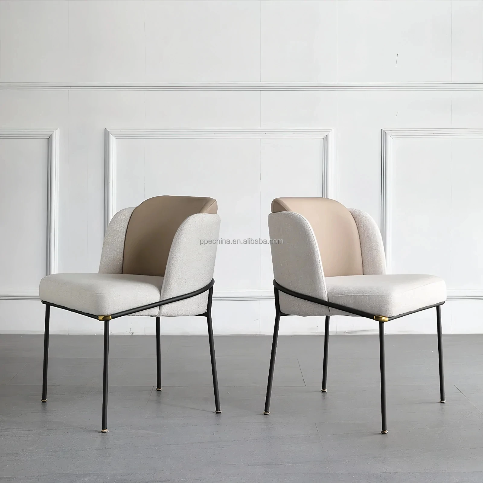 Home furniture modern light luxury custom linen woven fabric restaurant hotel cheap dining chair with metal legs