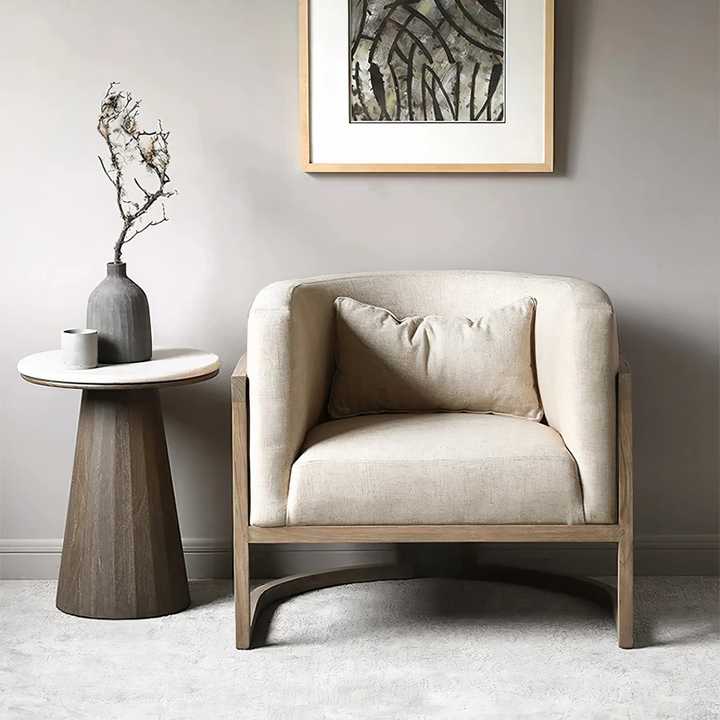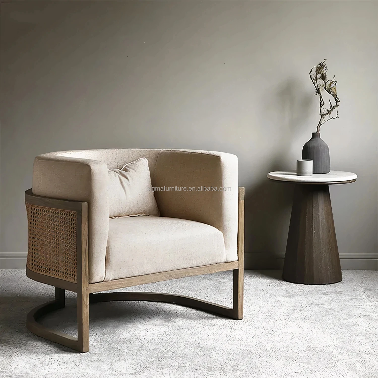 Hotel solid wood salon restaurant single sofa Nordic modern rattan fabric dining living room chairs