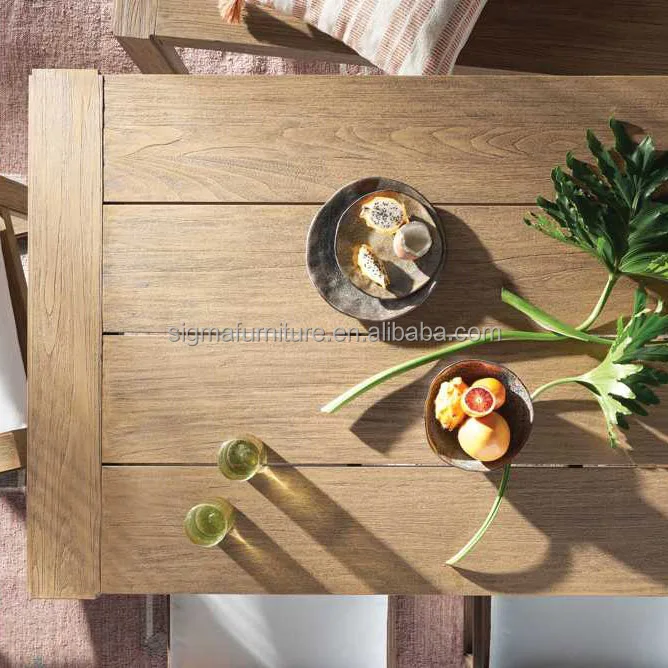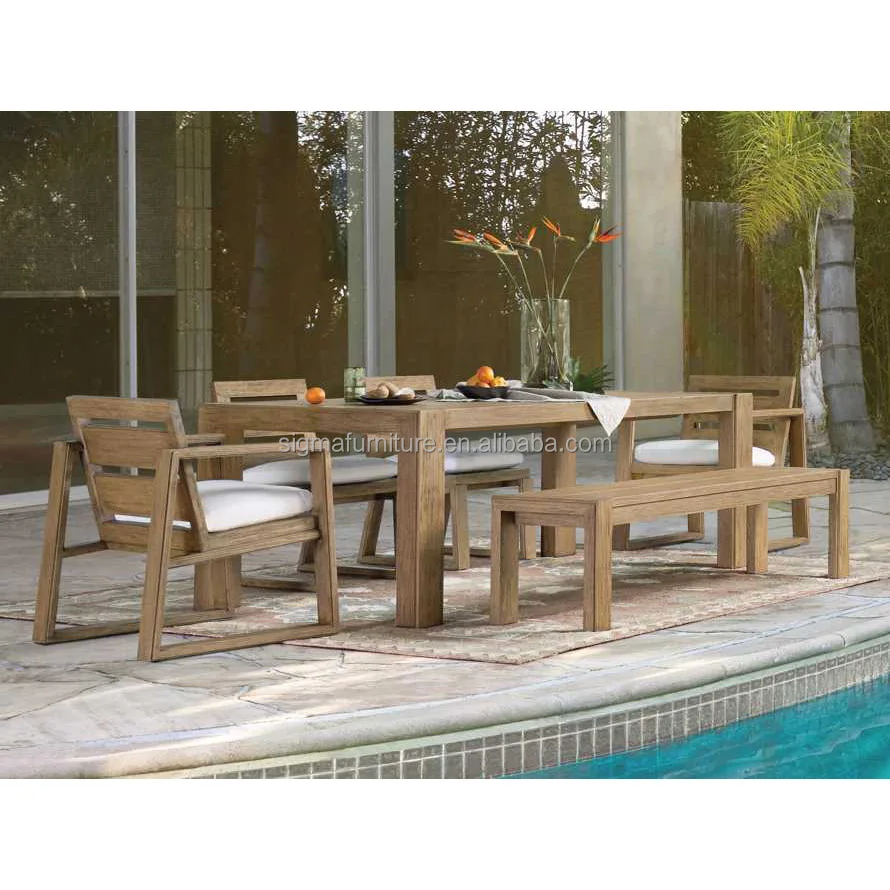 Leisure patio furniture waterproof teak bench outdoor rectangular dining set garden table and chairs
