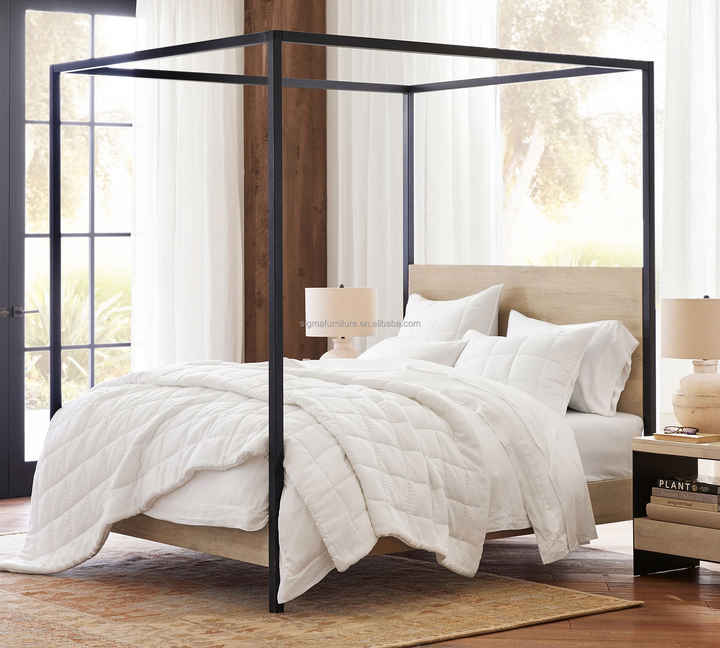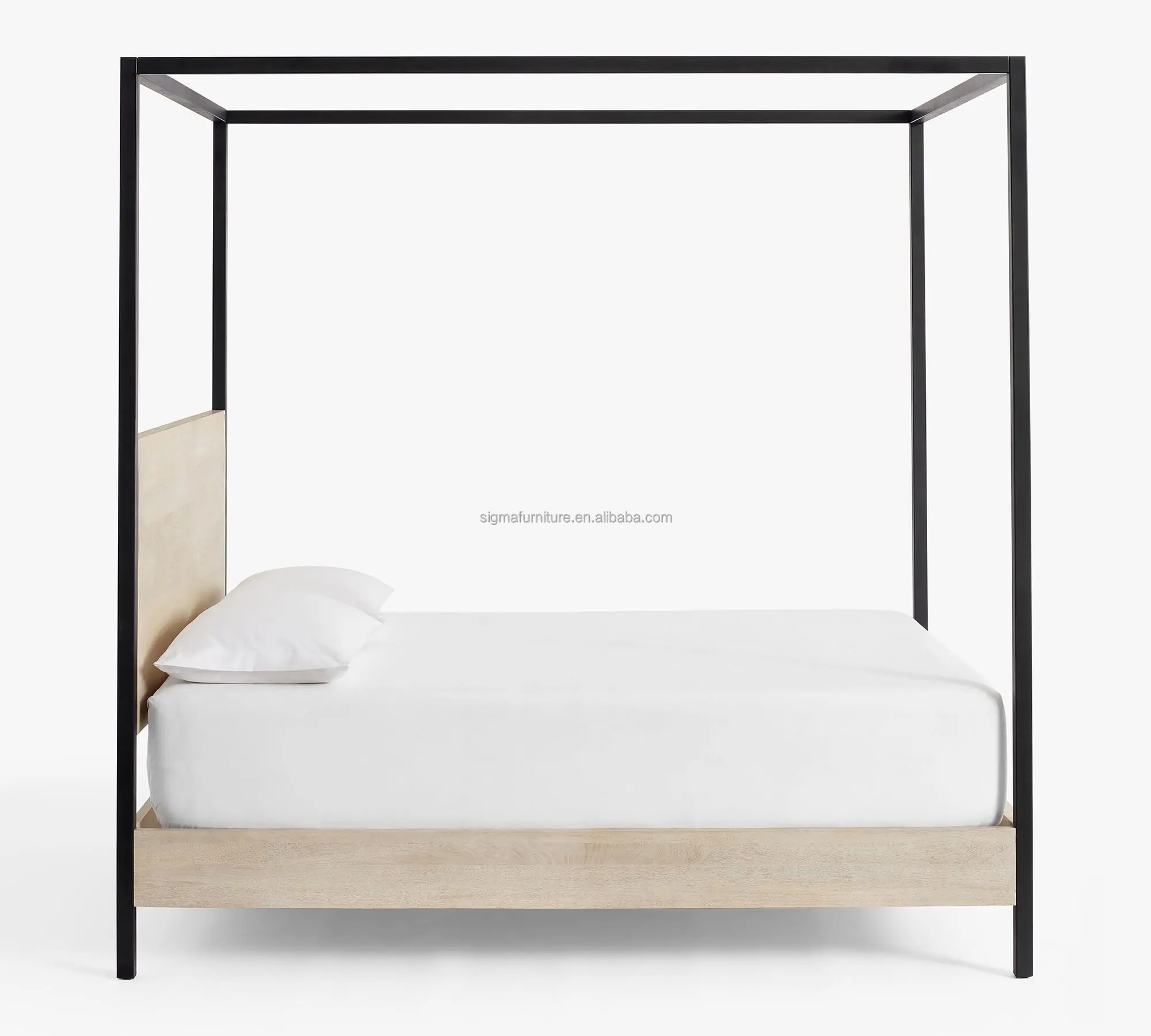 Low price made in China metal canopy bed bedroom furniture King&Queen size wooden frame bed