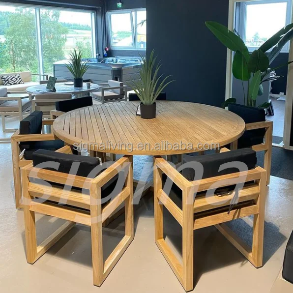 Outdoor Used Design 6 Seater Solid Teak Wood Outdoor Furniture Dining Table Set