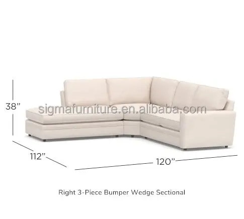 Luxury living room square arm upholstered 3-piece bumper sectional sofa set