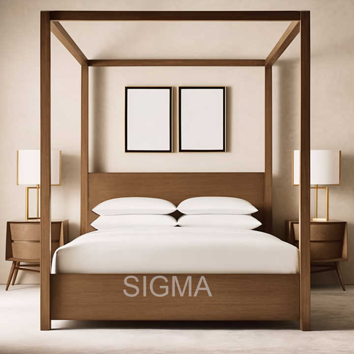 Luxury modern home furniture hotel bed American style wood bed bedroom oak canopy bed