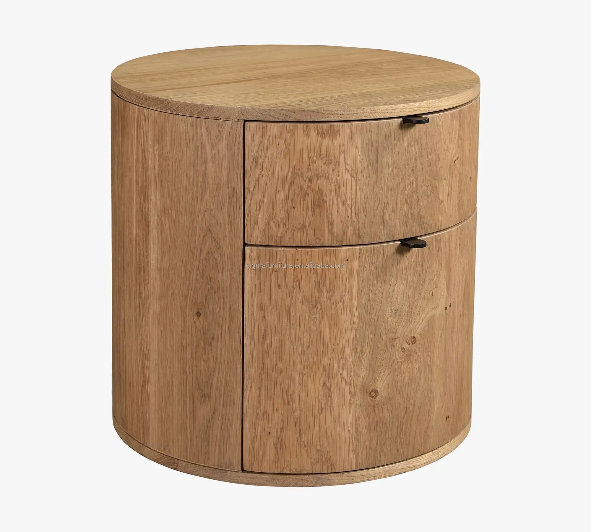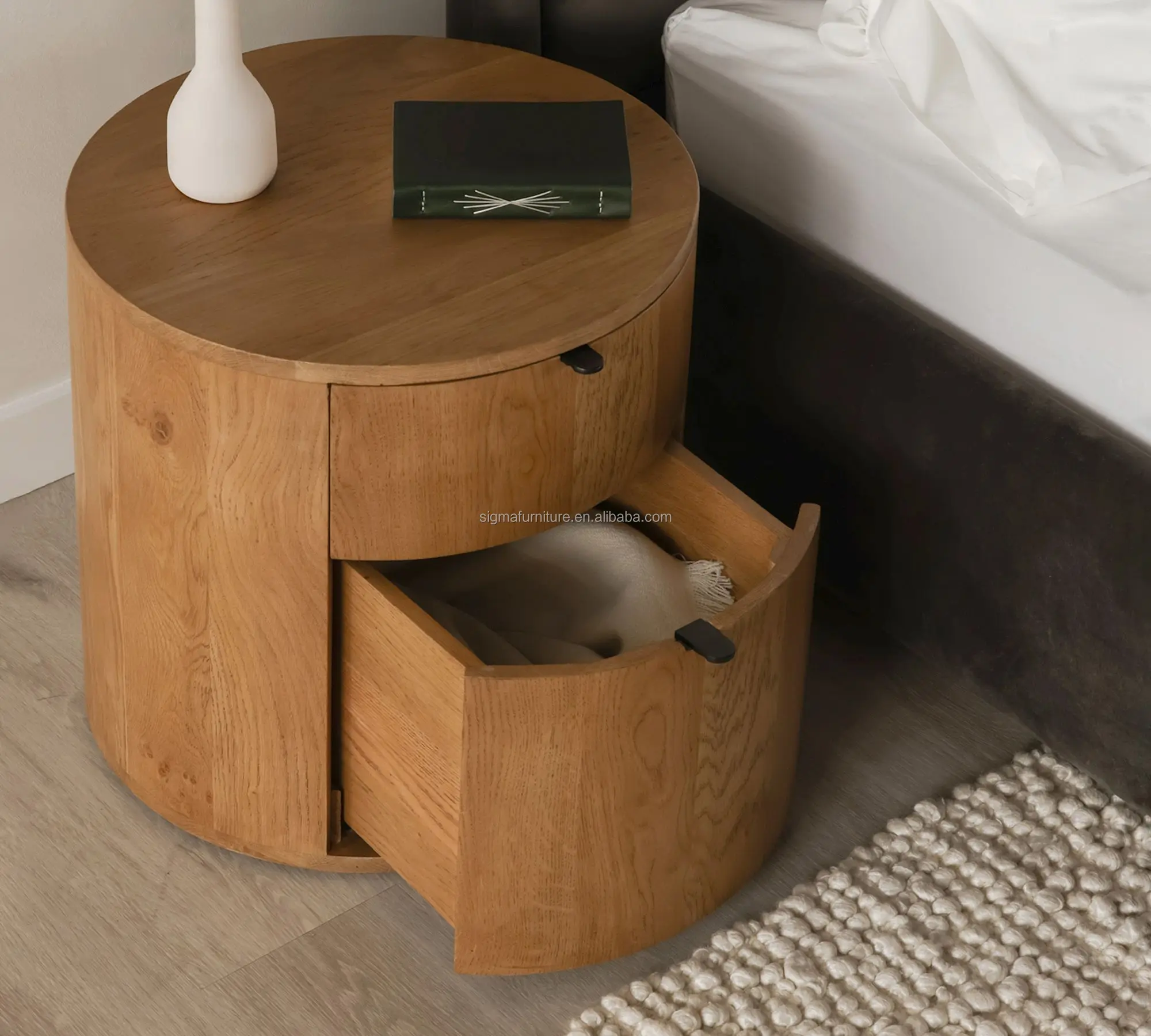 Luxury modern solid wood 2-drawer round bedroom bedside table cabinet nightstand