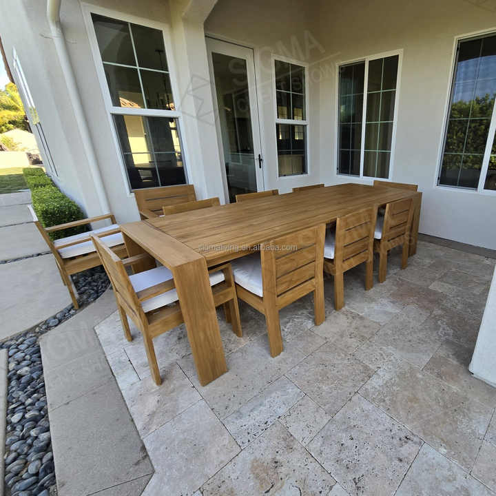 Luxury Modern Teak Wood Outdoor Dining Table and Chair Set 6-8-10 Seat Foldable for Patio Garden Park Entry Villa Gym