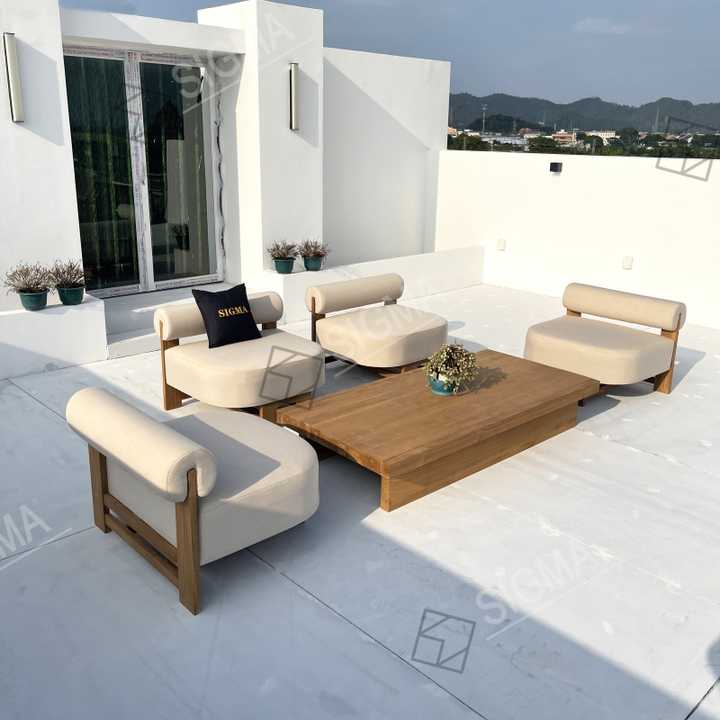 Luxury Outdoor Garden Patio Furniture Modern hotel Teak Wood Lounge Sofa Set High quality Sectional garden Sofa