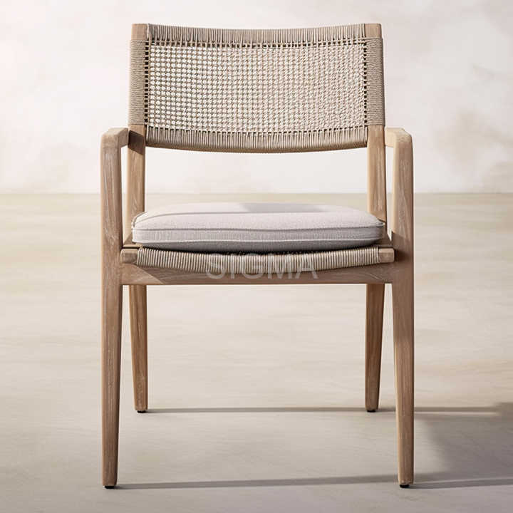 Luxury Solid Wood Patio Outdoor Teak Dining Chairs Garden Waterproof Rope Teak Outdoor Furniture Dining Chair