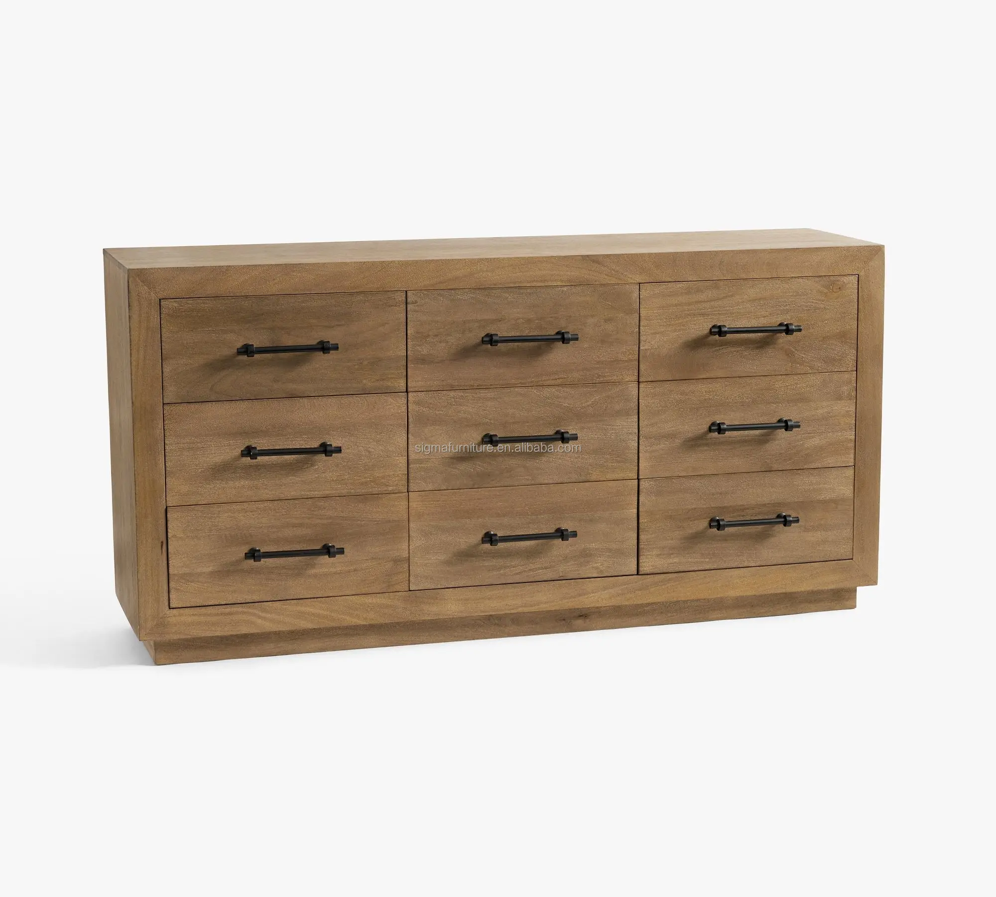 Mid century vintage wooden cupboard furniture cabinet hardware 9-drawer dresser