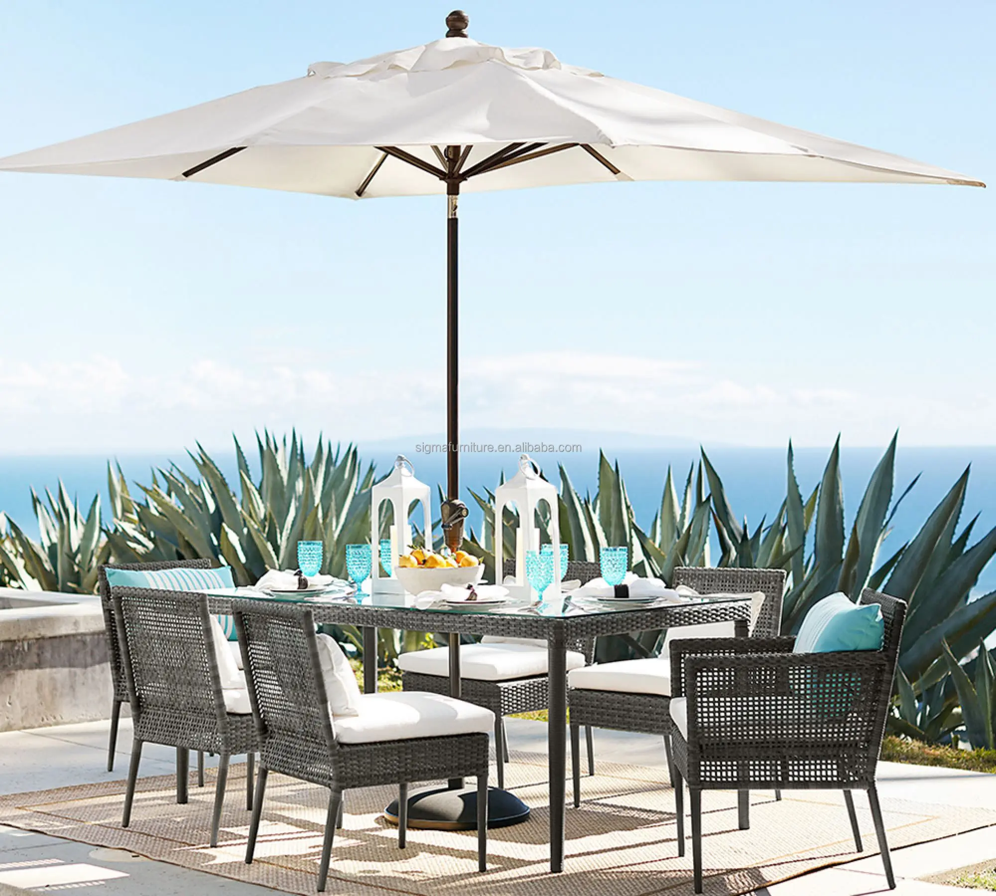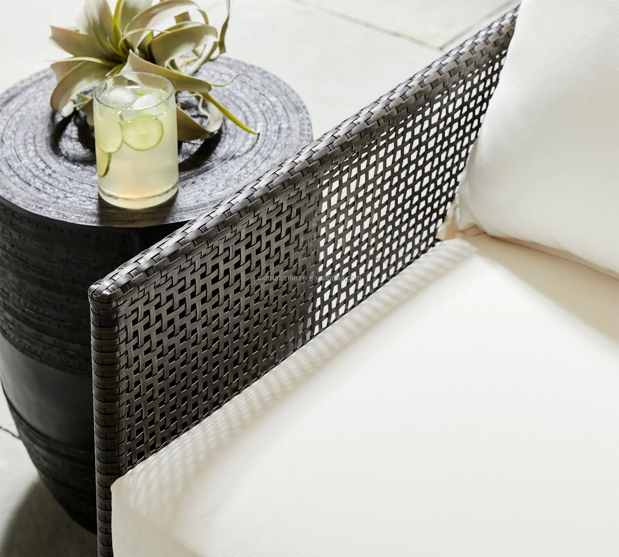 Modern beach restaurant luxury garden outdoor rattan dining armchair waterproof wicker dining chair