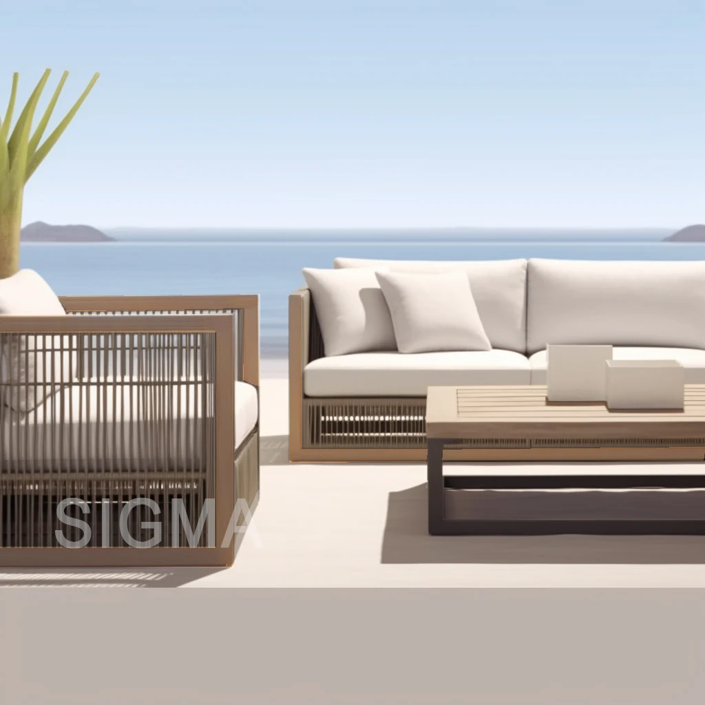Modern Design Garden Sofa Set Outdoor Woven Rope Teak Wood Outdoor Furniture