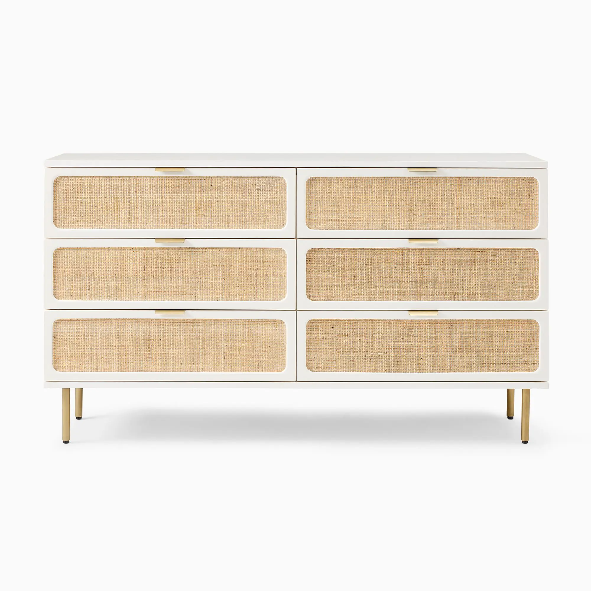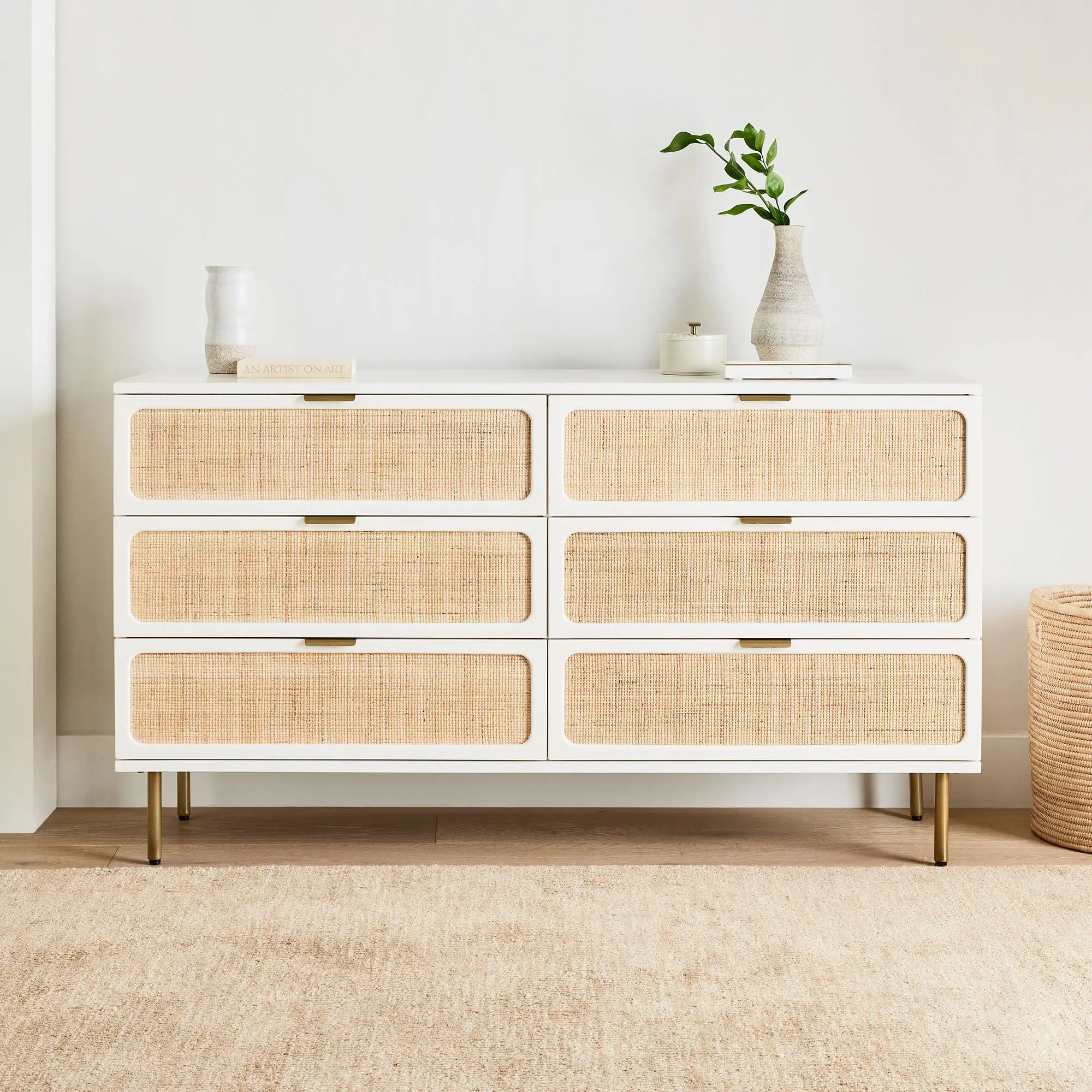 Modern in Ash Wood Structure Bedroom Metal Handle 6-Drawer Corner Furniture Double Wood Dresser