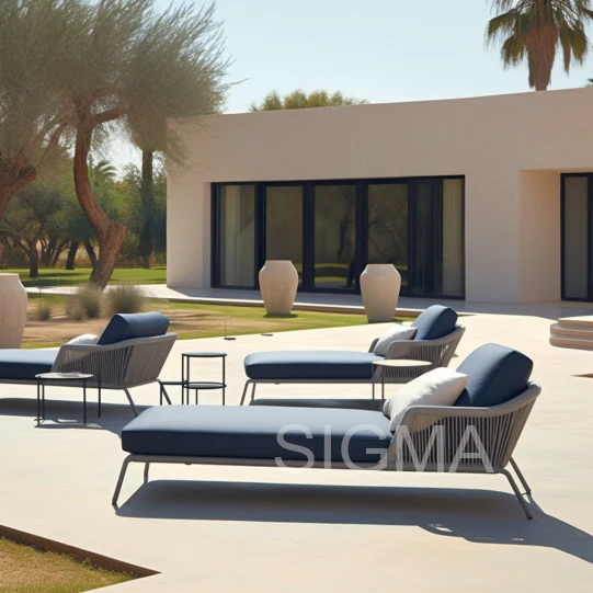 Modern outdoor nordic simple combination rope aluminum lounge chaise furniture garden swimming pool