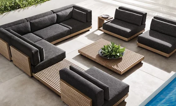 Modern Premium Weathered Teak furniture Outdoor furniture Sofa Set solid Wood Outdoor Furniture with Cushions