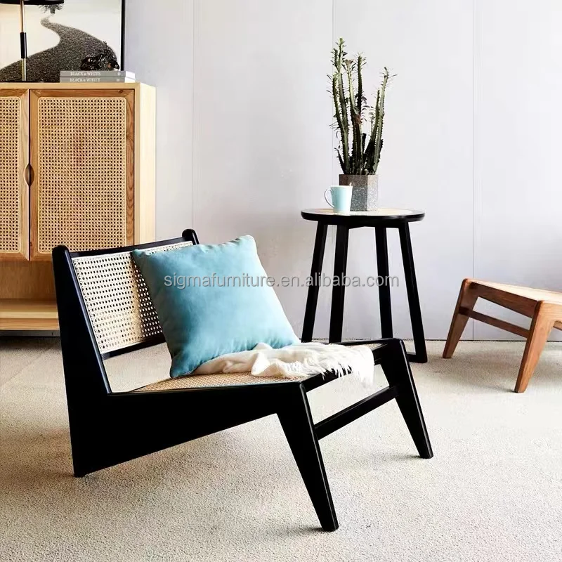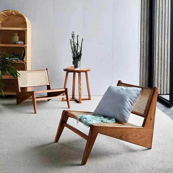 Modern single living room oak wood rattan wicker leisure indoor home furniture lounge chair