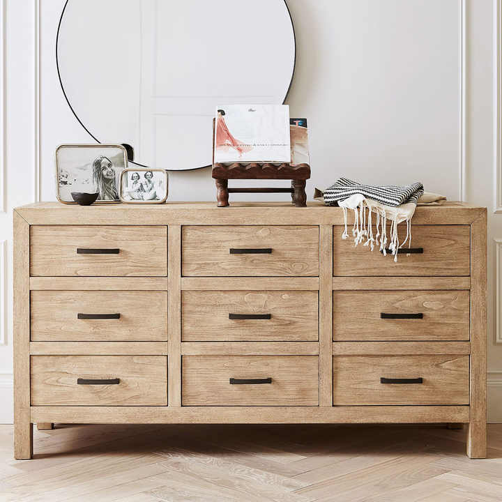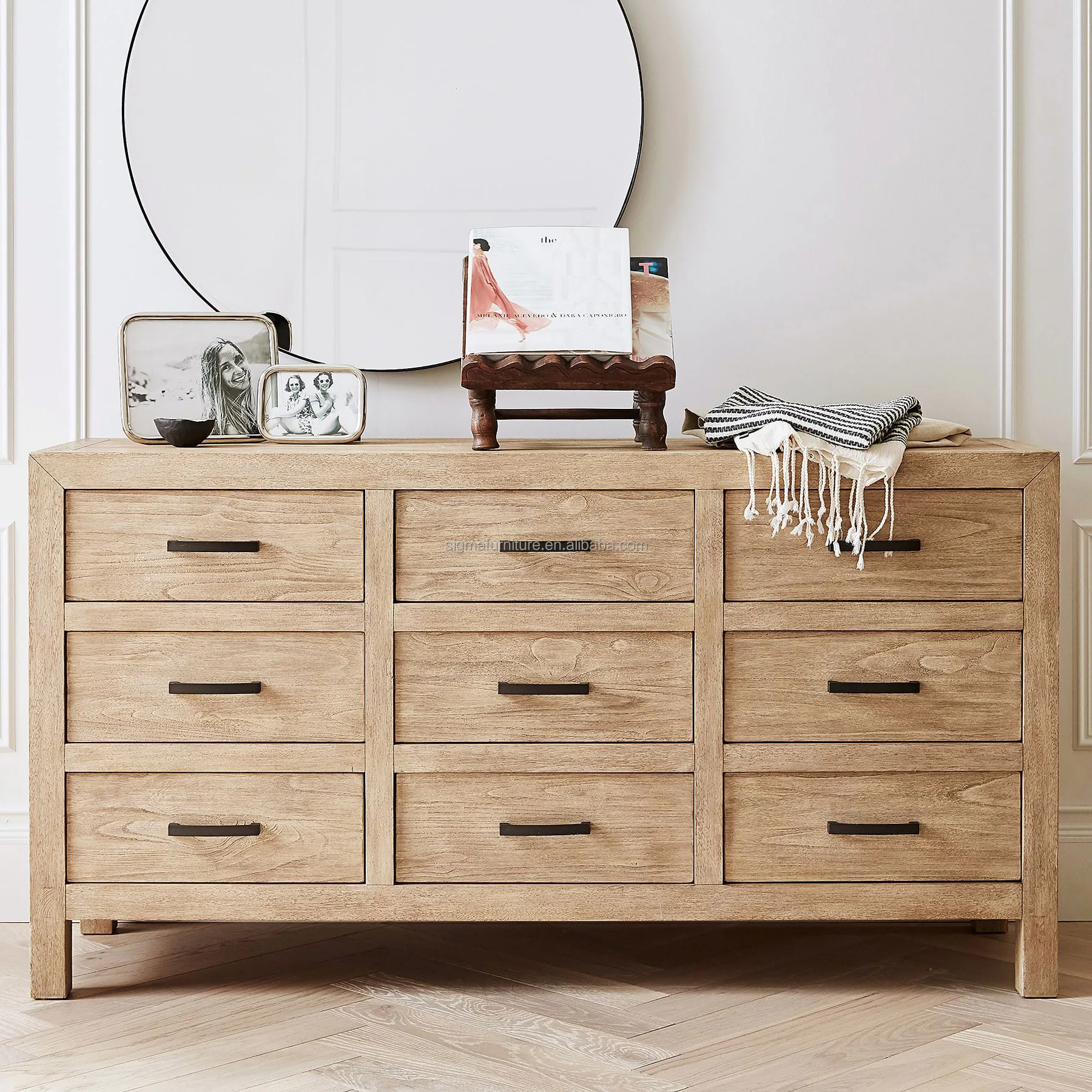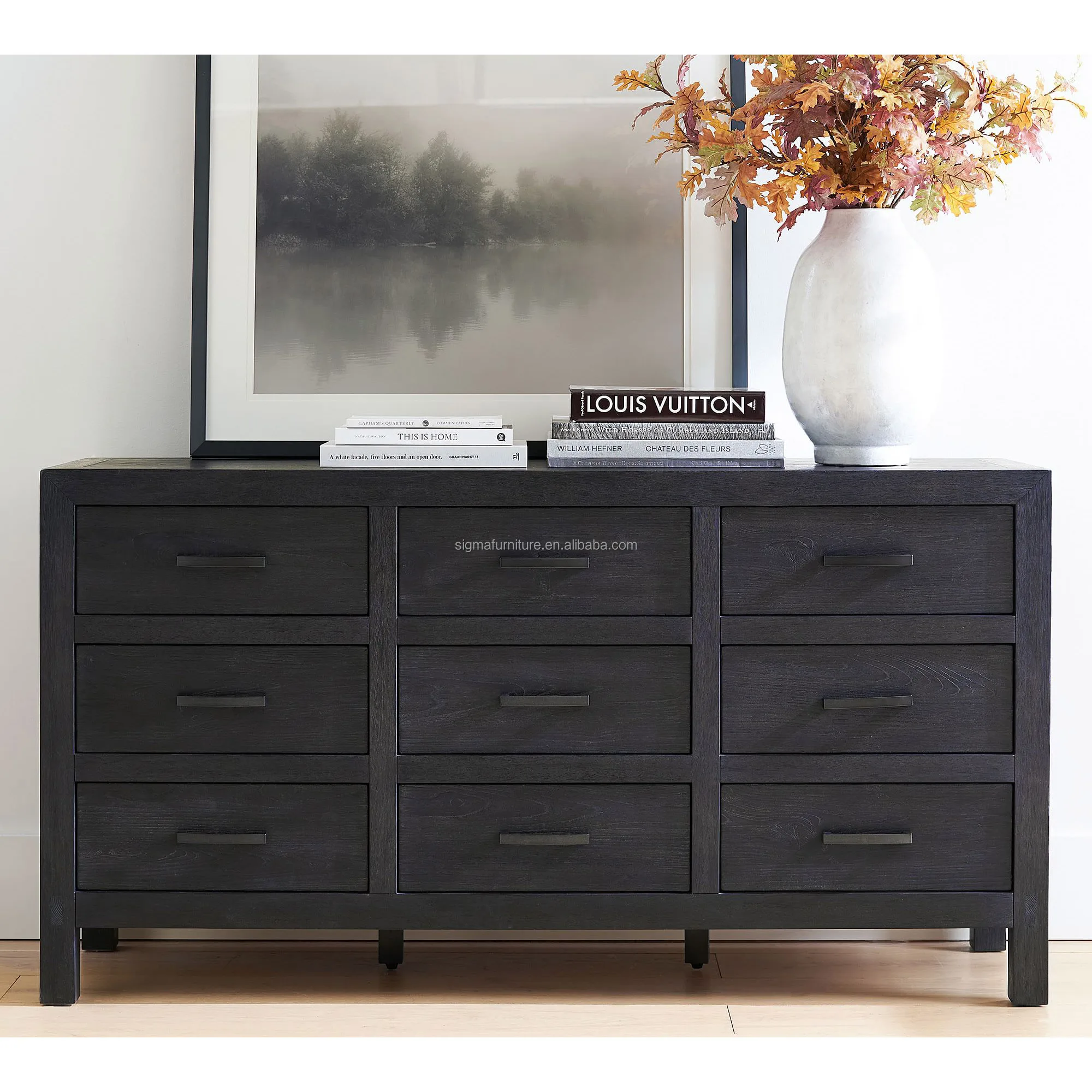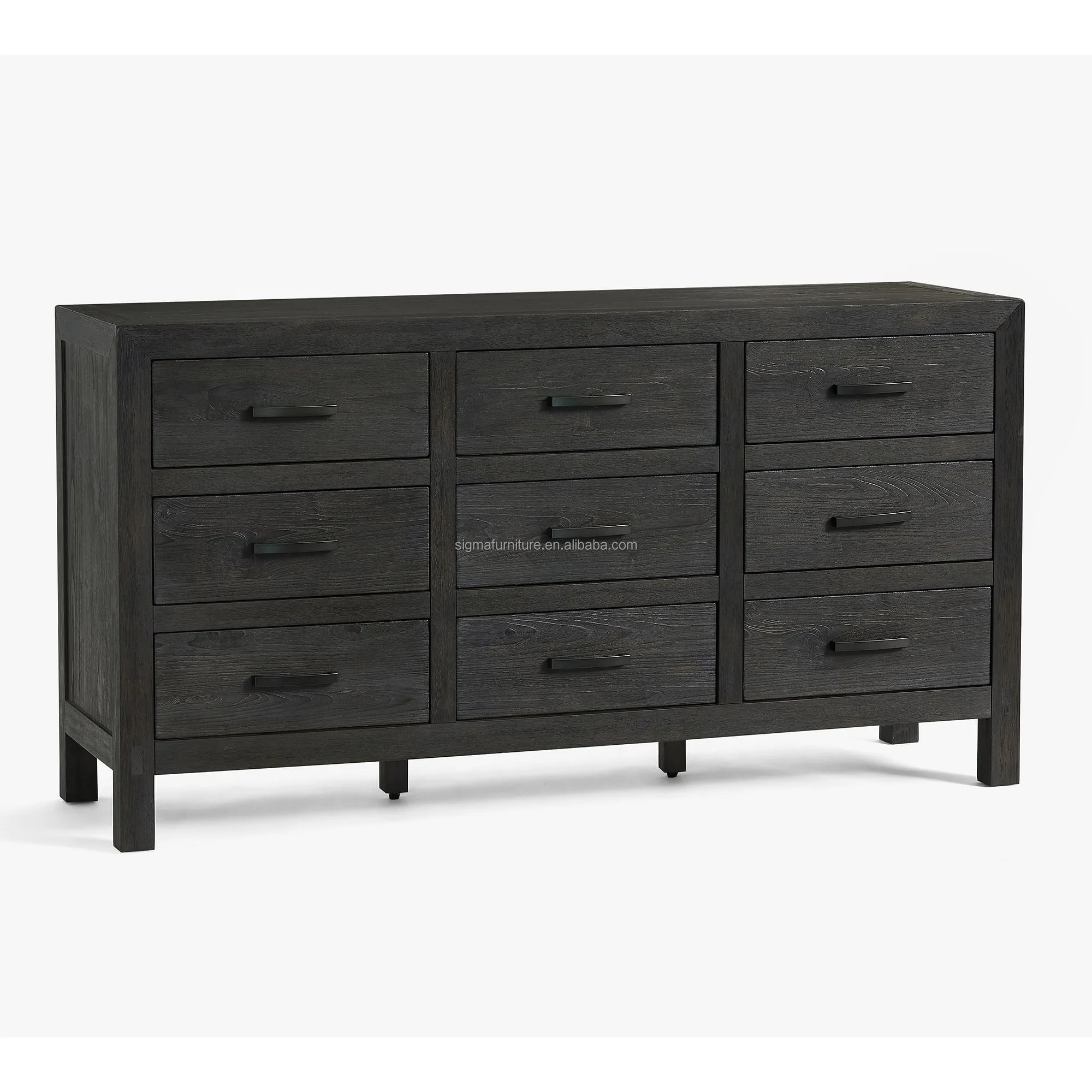 Modern Solid Wood Structure Bedroom 9-Drawer Corner Bed Side Furniture Double Wood Dresser with Metal Handle