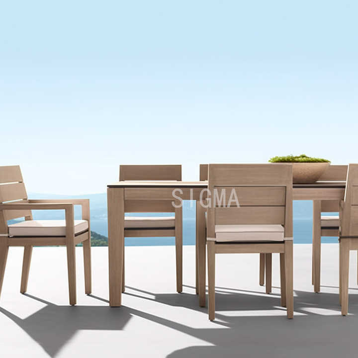 Natural Teak Dining Table And Chair Set Rectangular Teak Dining Outdoor Table set