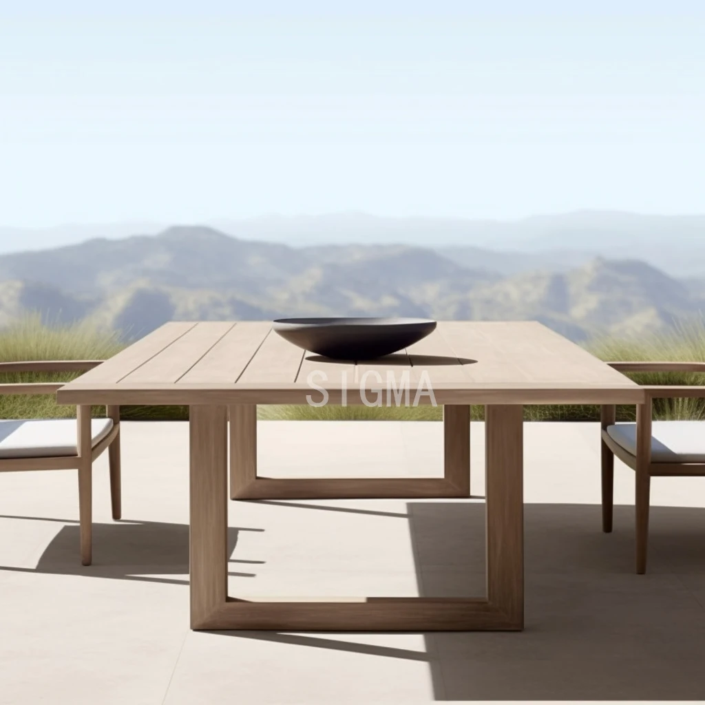 New Arrival All Weather Garden Furniture Set Outdoor Patio Solid Teak Rectangular Wooden Round Dining Table 4 6 8 10 12 Seater