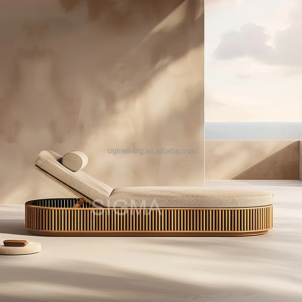 New Arrival Garden Furniture Teak Wood Outdoor Bed Sun Loungers Beach Chaise Lounge