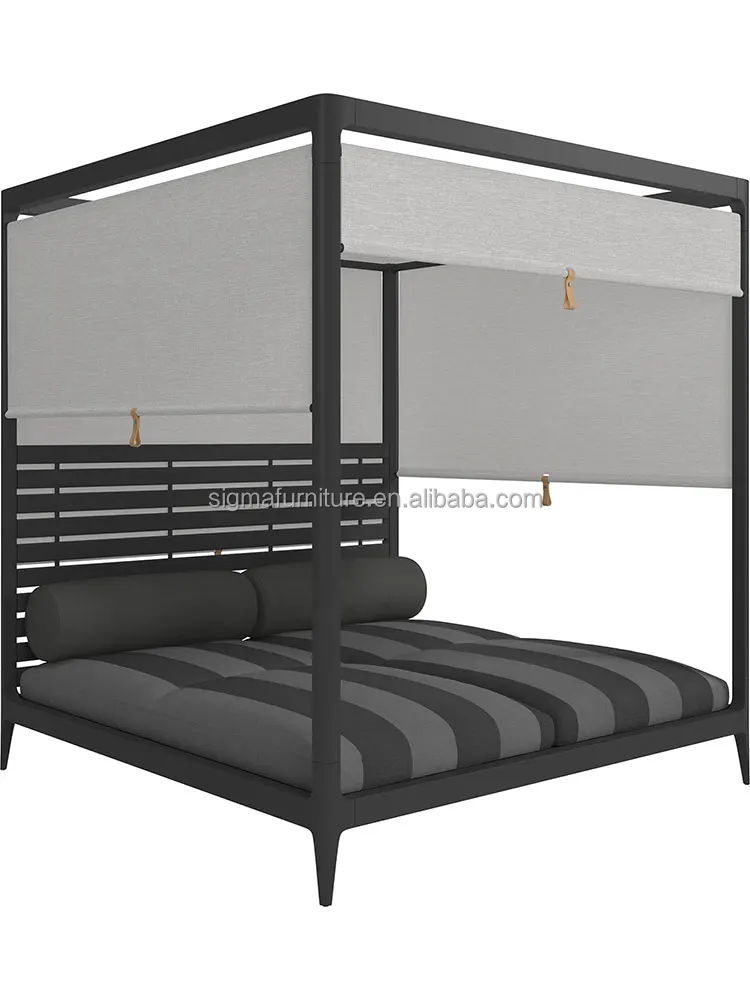 New Arrival Home Hotel Resort Furniture Outdoor Leisure Aluminum Frame All Weather Fabric Daybed Cabana