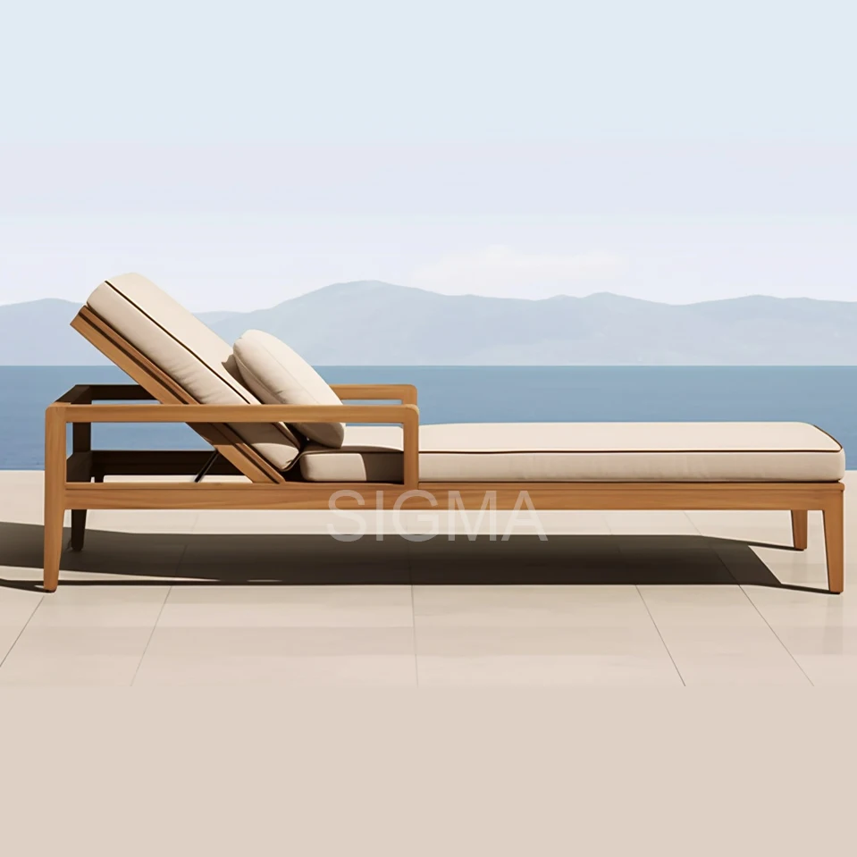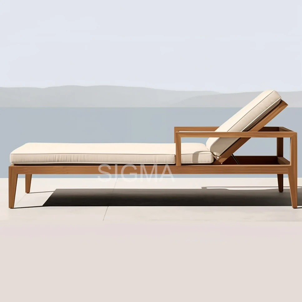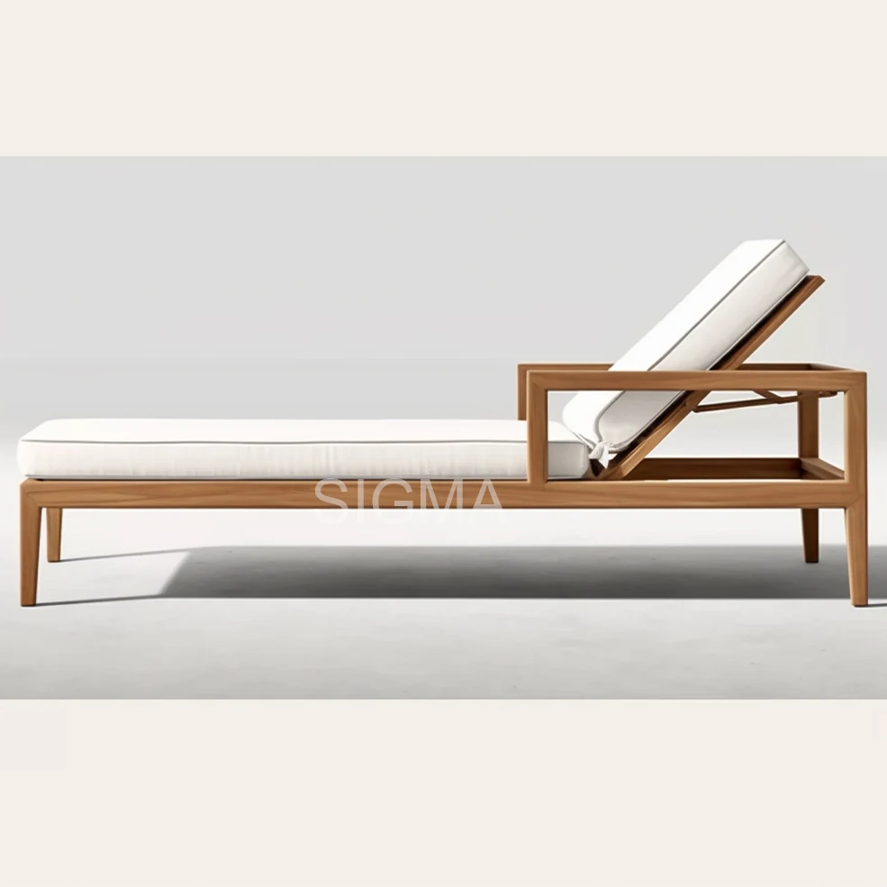 New Arrival Patio garden Pool Sun Furniture Set Solid Wood Teak Outdoor Chaise Lounge Chair Soft Waterproof Cushion