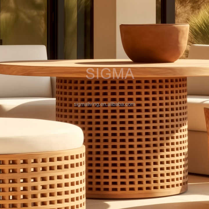 Newest Design Patio Garden Furniture Wholesale Wooden Frame Outdoor Dining Set Round Teak Wood Dining Table