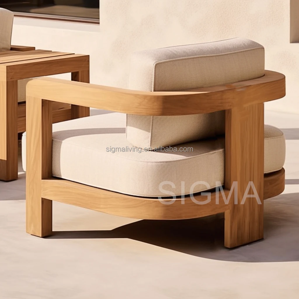 Newly Design Water-resistant Outdoor Furniture Garden Wooden Frame Outdoor Sofa Set Teak Wood Sofa
