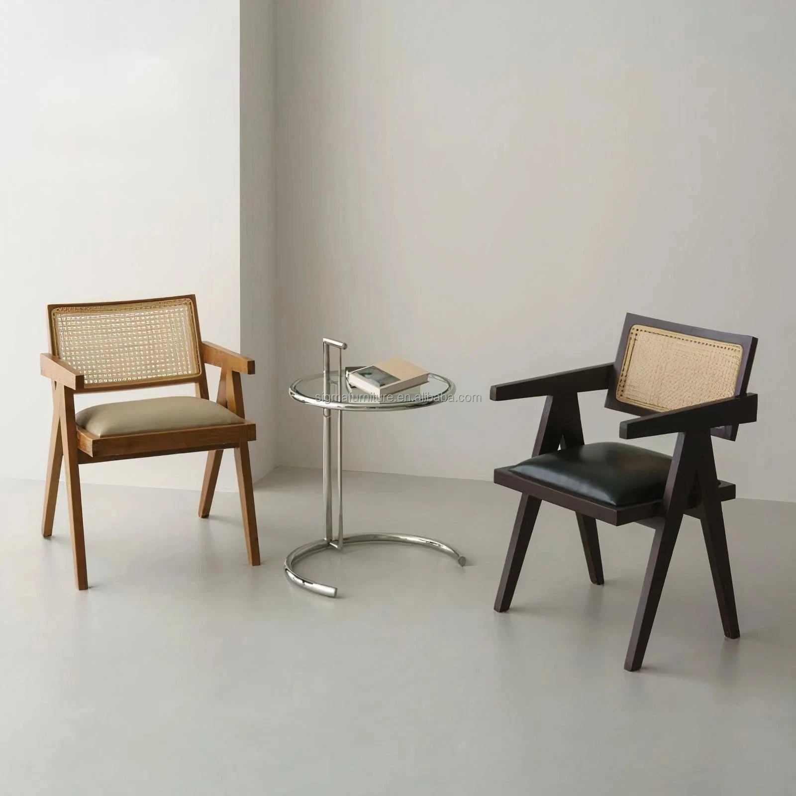 Nordic home furniture solid wood frame indoor chairs high quality rattan arm dining chair