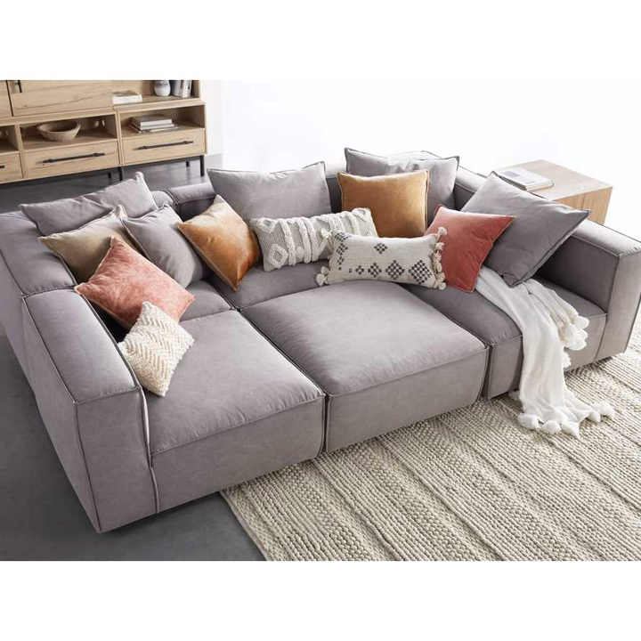 Nordic Style Home Furniture Design Lounge Modular Luxury Fabric Ottoman 6 Seat Living Room Sofas