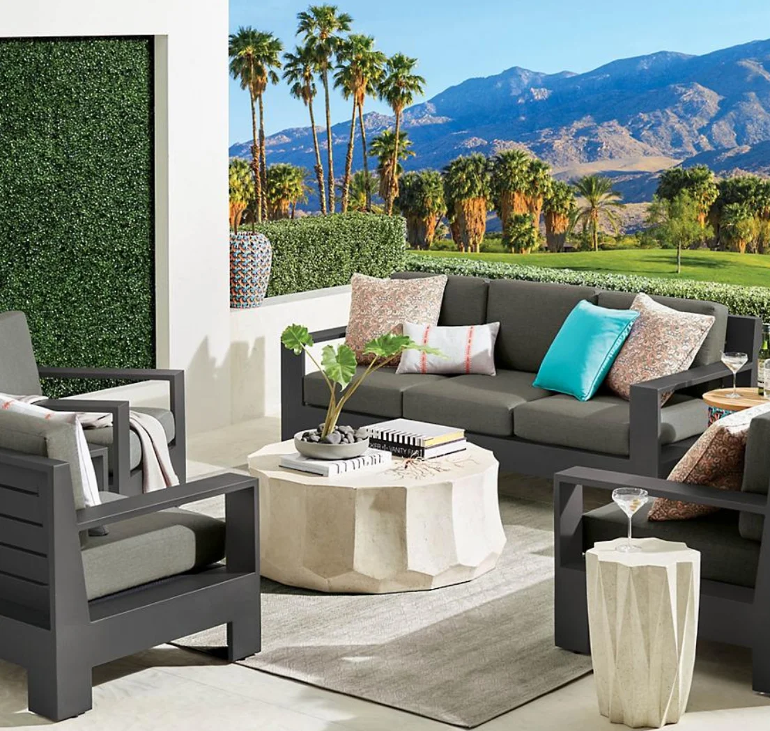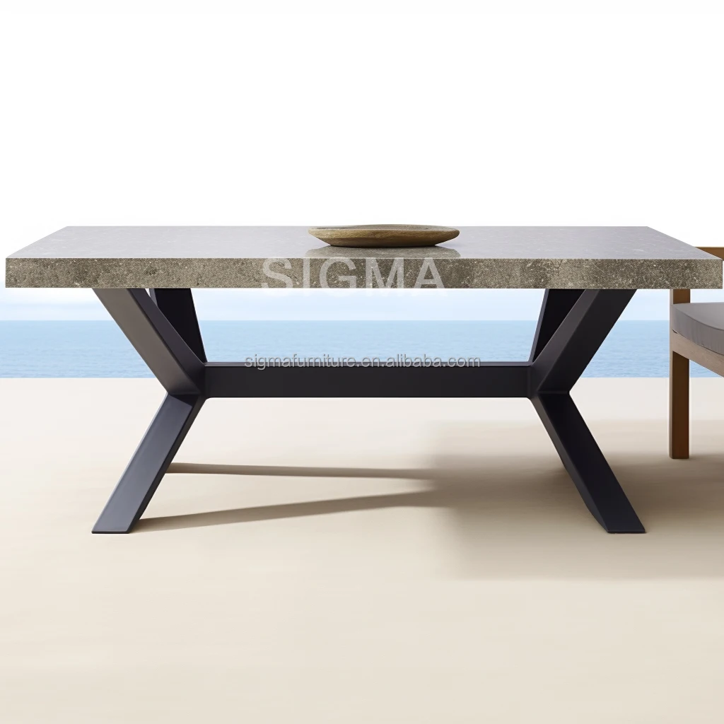 Outdoor furniture garden aluminum base coffee dining table rectangle with marble top