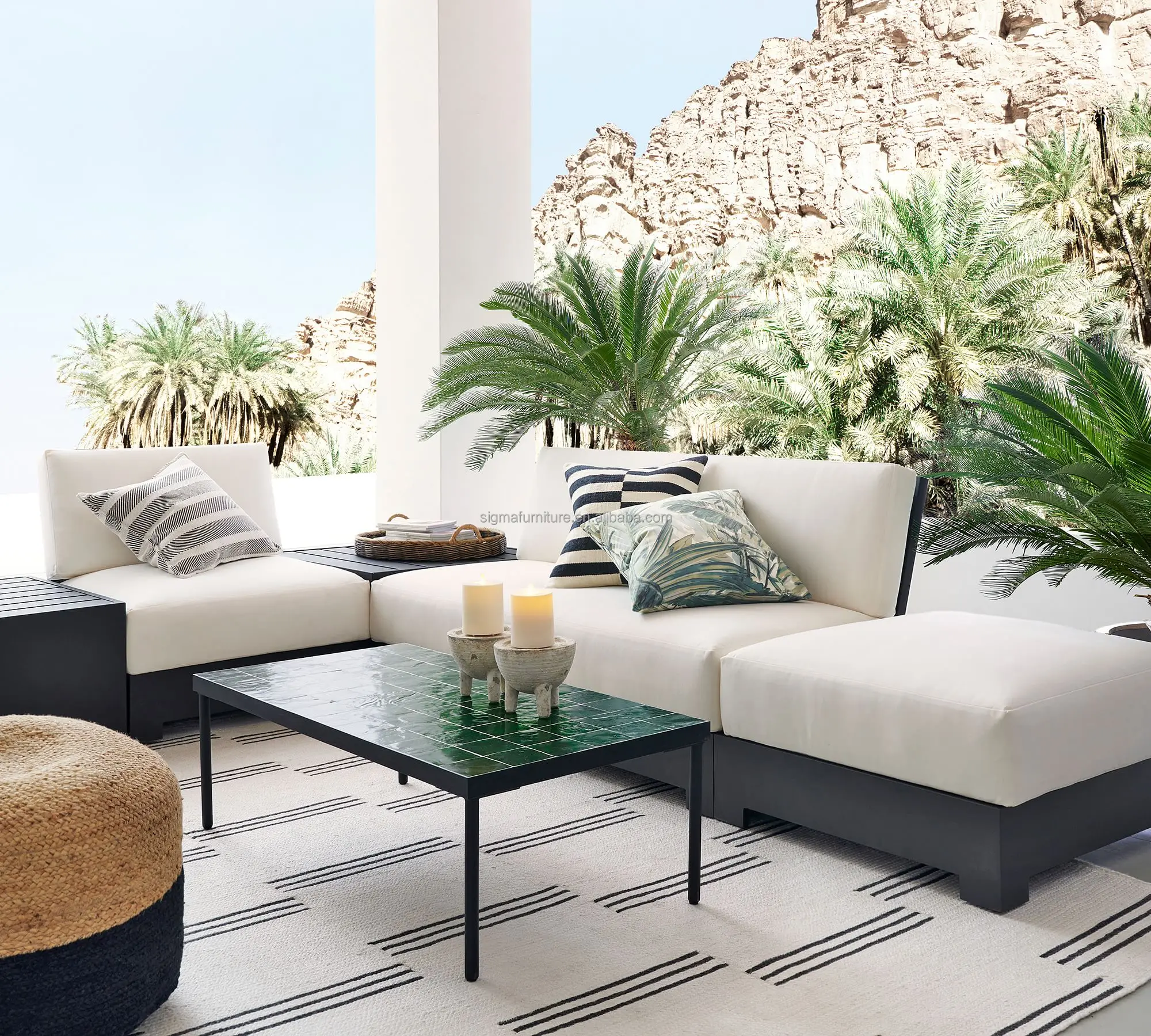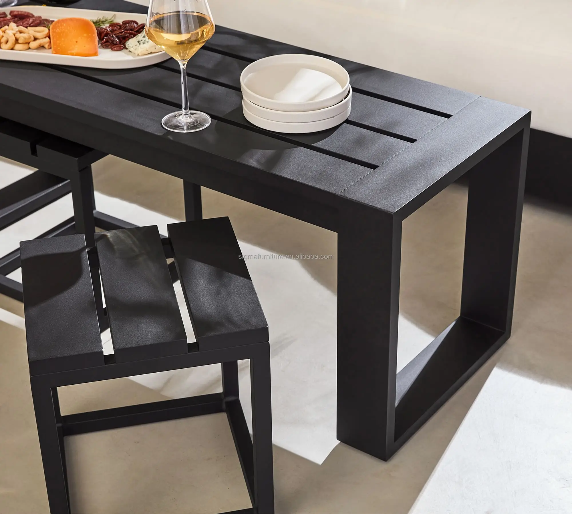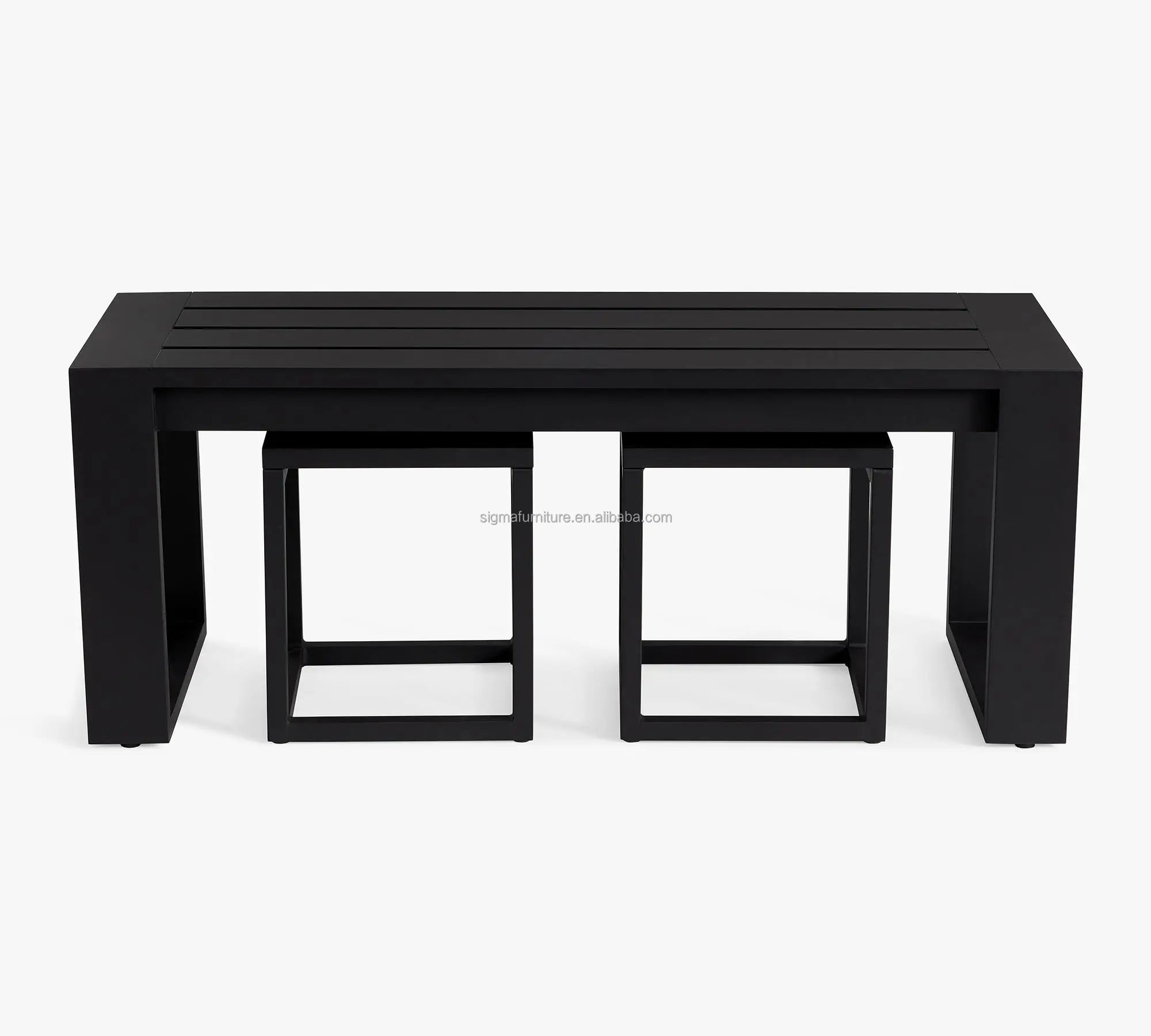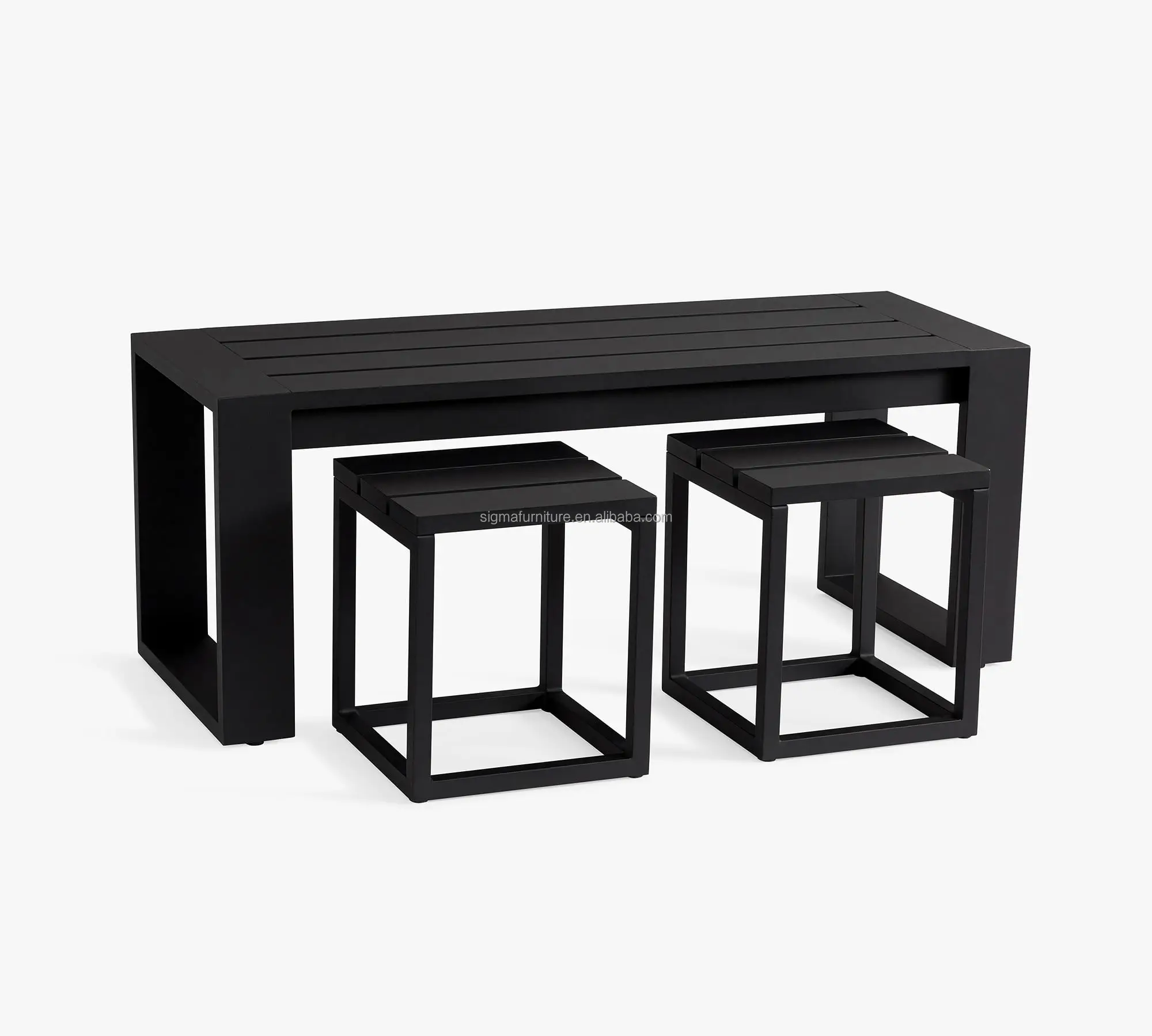 Outdoor garden all weather furniture portable metal aluminum side coffee table with 2 aluminum stools whole set for sale